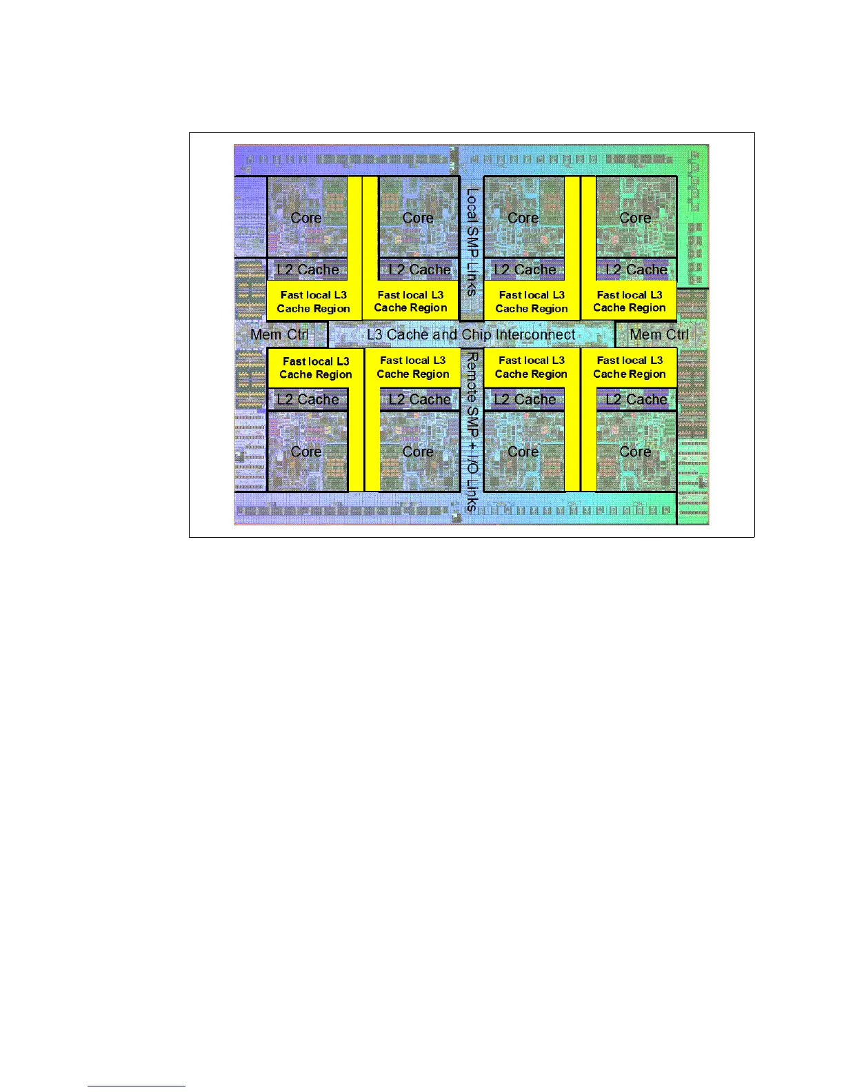 Figure 2-6 shows the FLR-L3 cache regions for the cores on the POWER7 processor die.