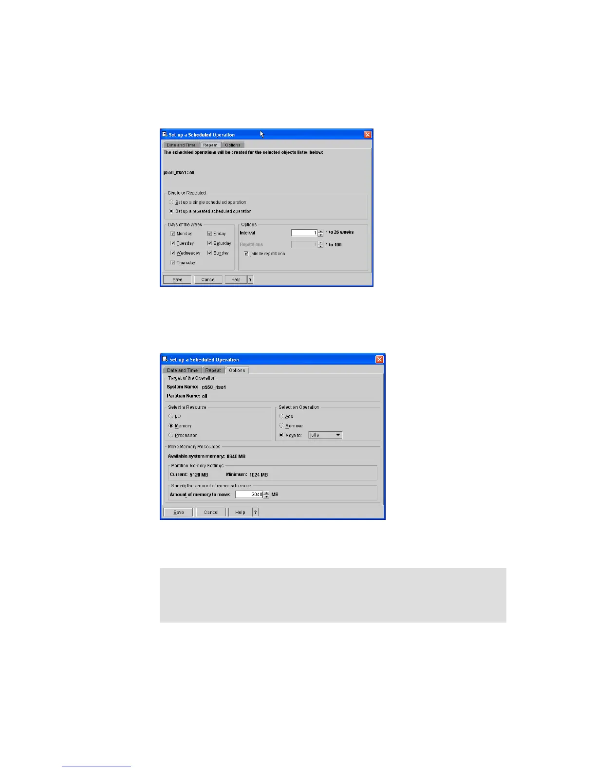 Figure 19 Specifying the details of the dynamic LPAR operation