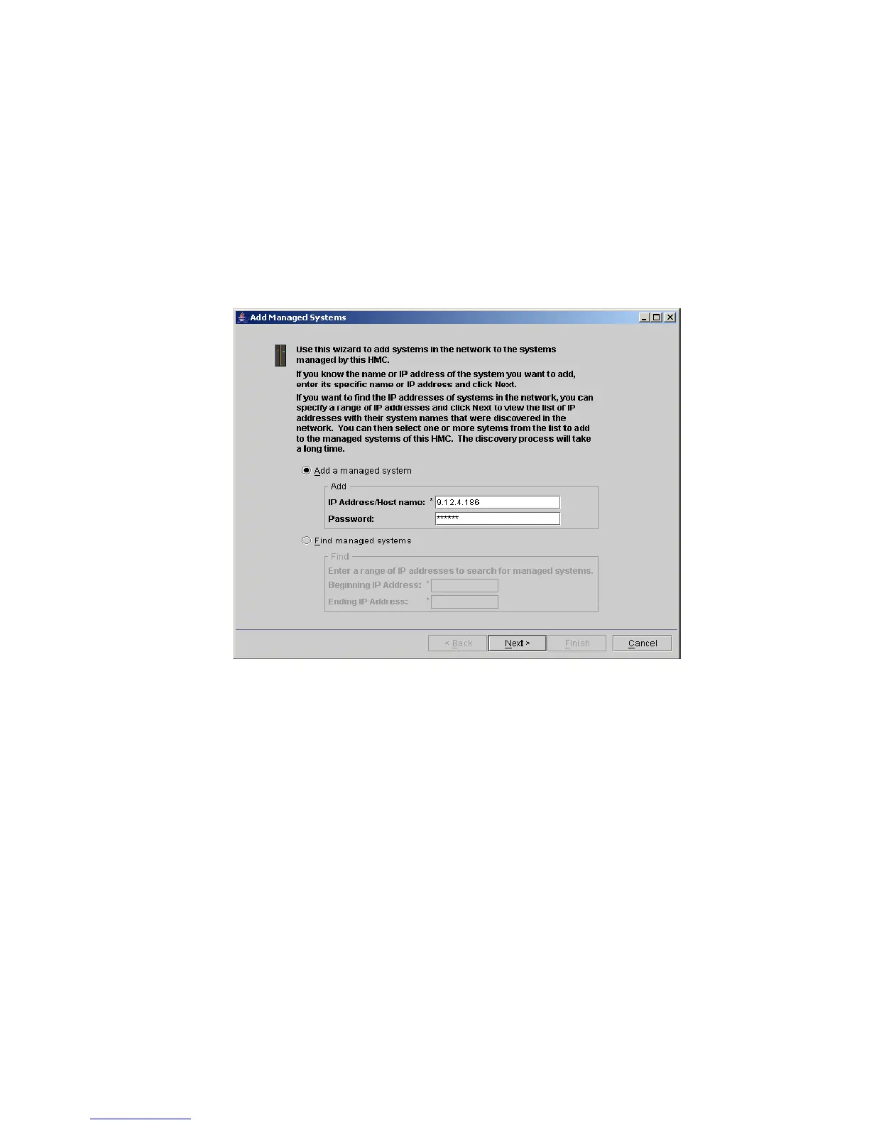 On HMC1, the managed system becomes automatically visible. On HMC2, the