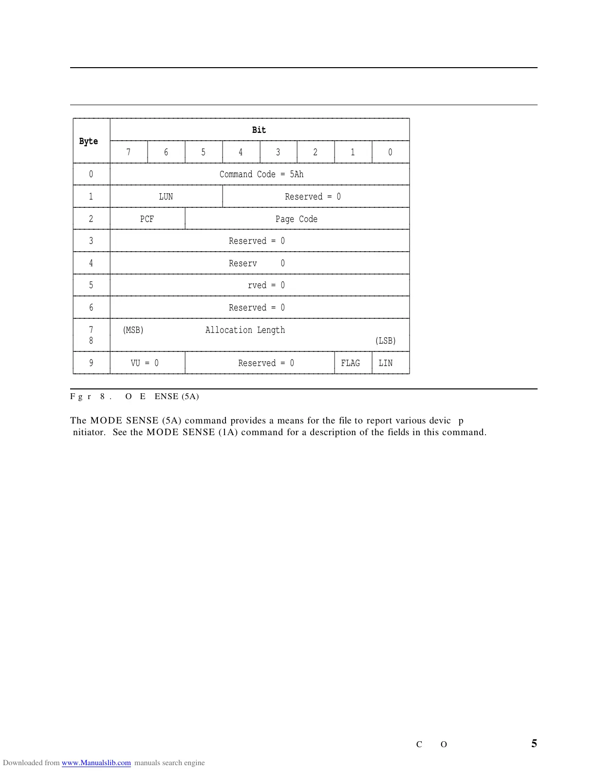 The MODE SENSE (5A) command provides a means for the file to report various device parameters to the