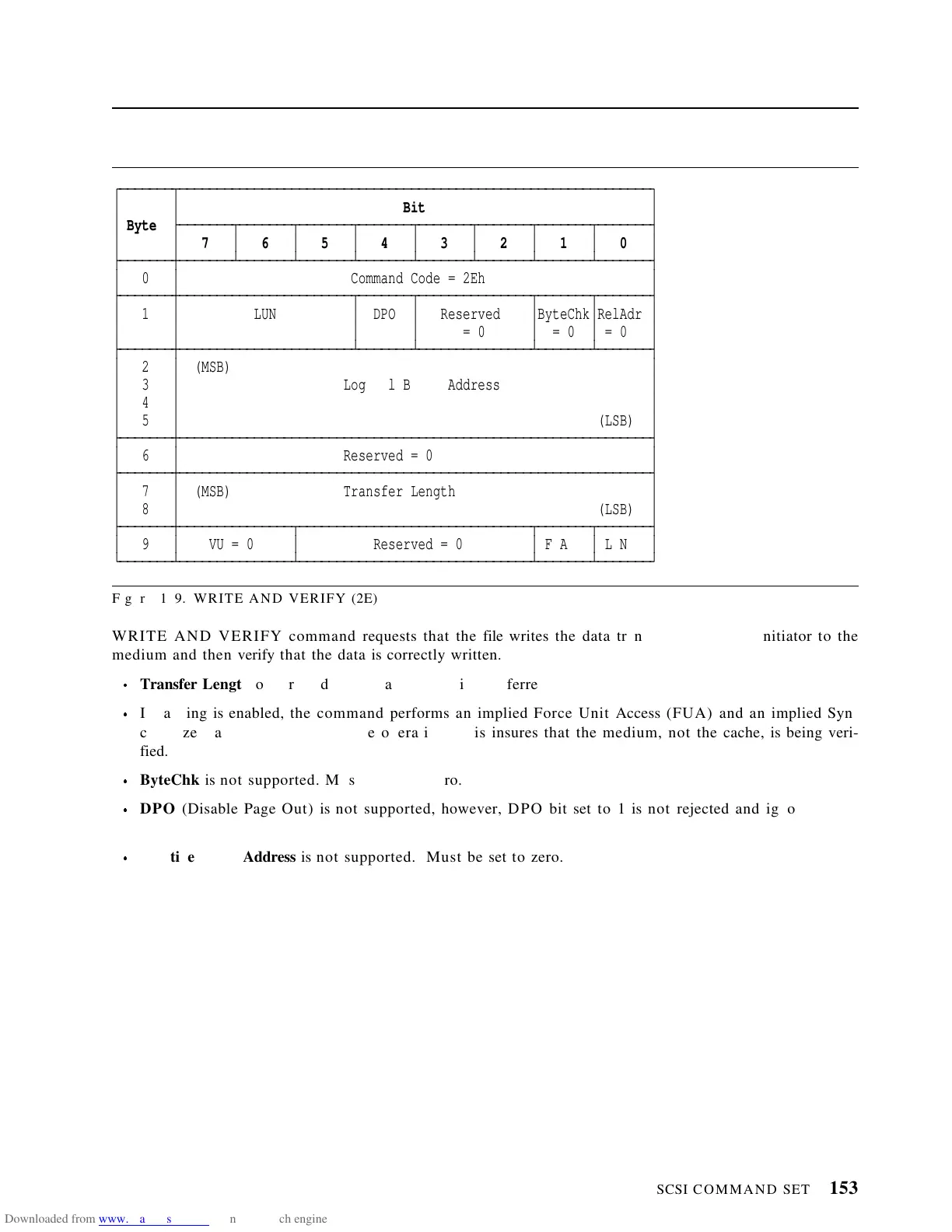 WRITE AND VERIFY command requests that the file writes the data transferred from the initiator to the