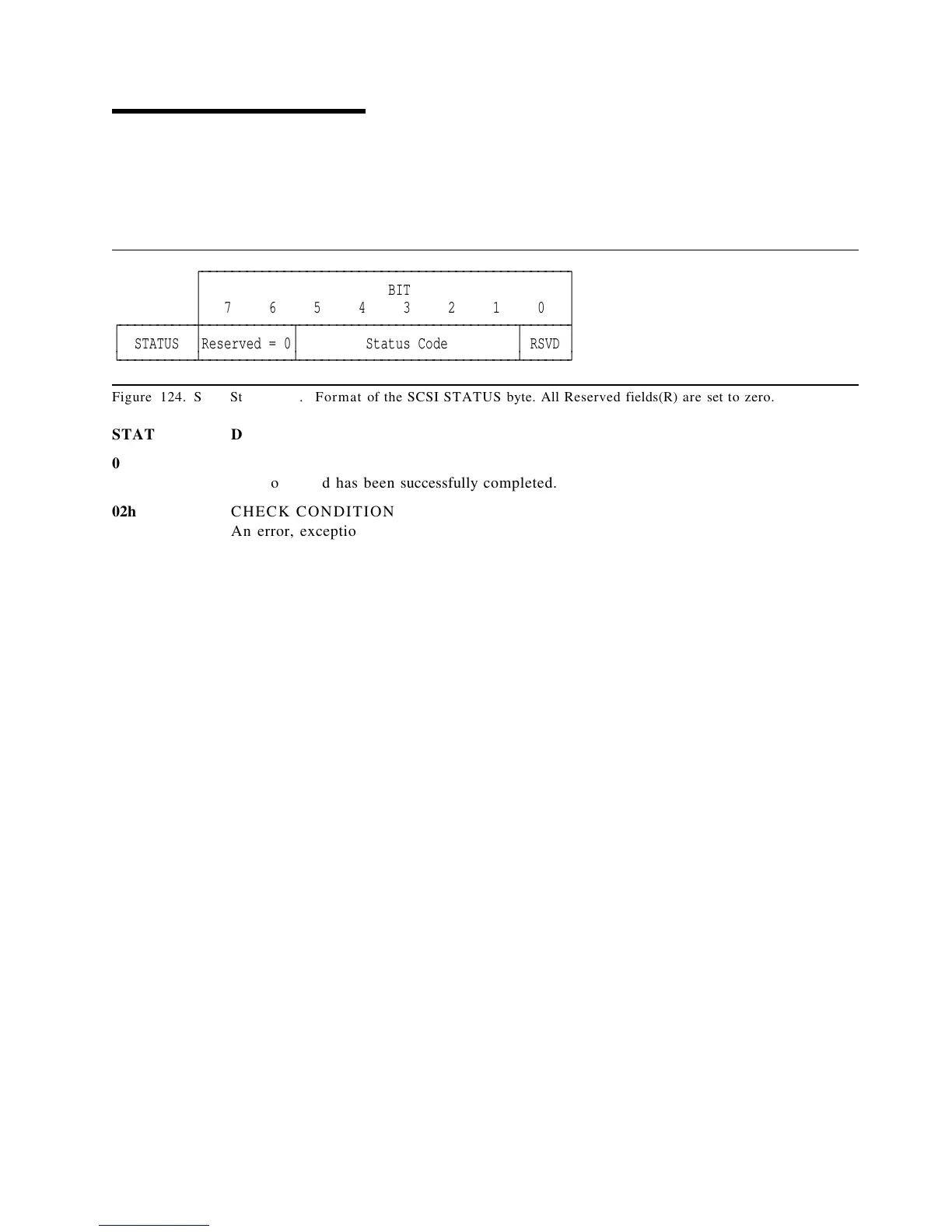 Figure 124. SCSI Status Byte. Format of the SCSI STATUS byte. All Reserved fields(R) are set to zero.