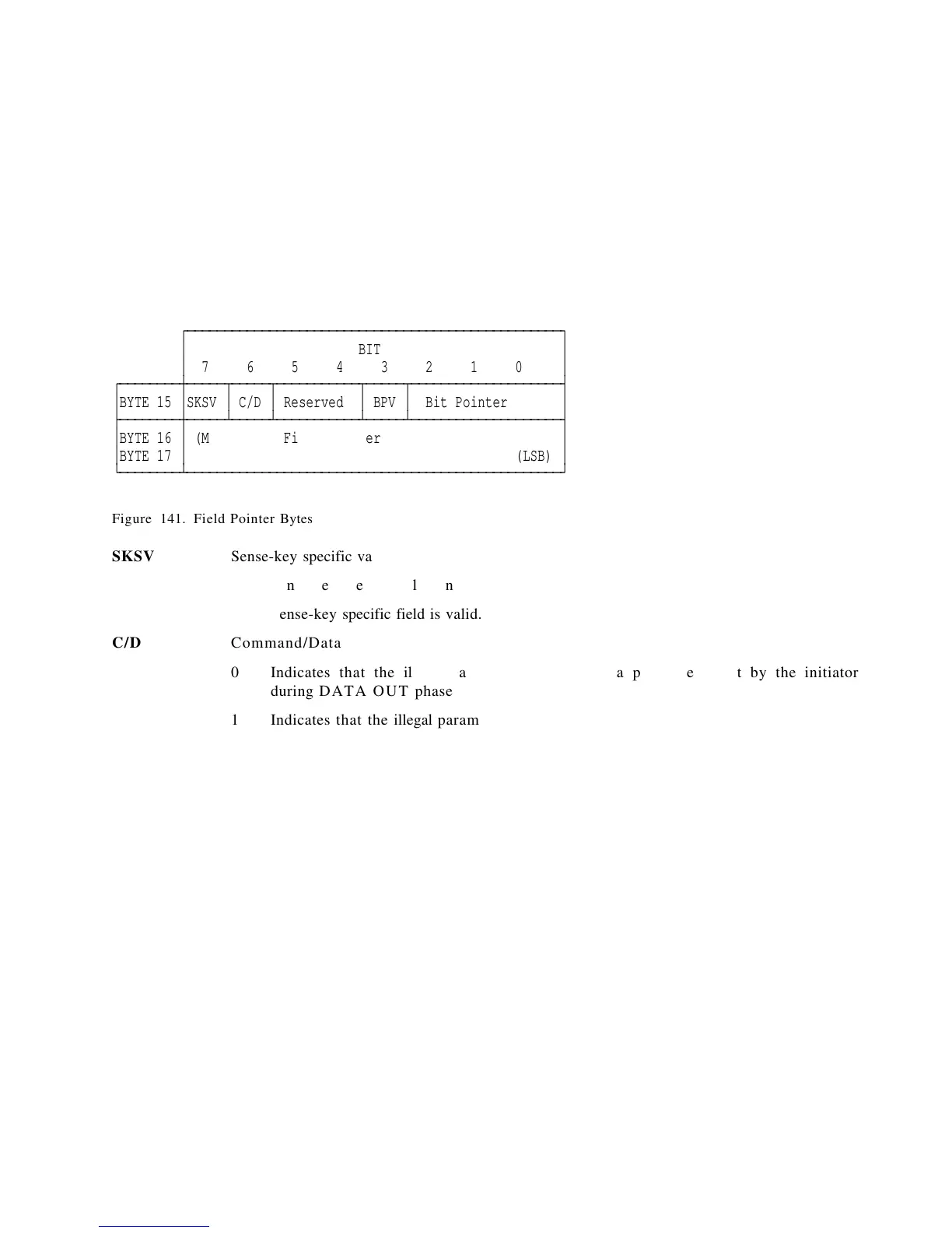 Field Pointer Indicates which bytes of the command descriptor block or of the parameter data was in
