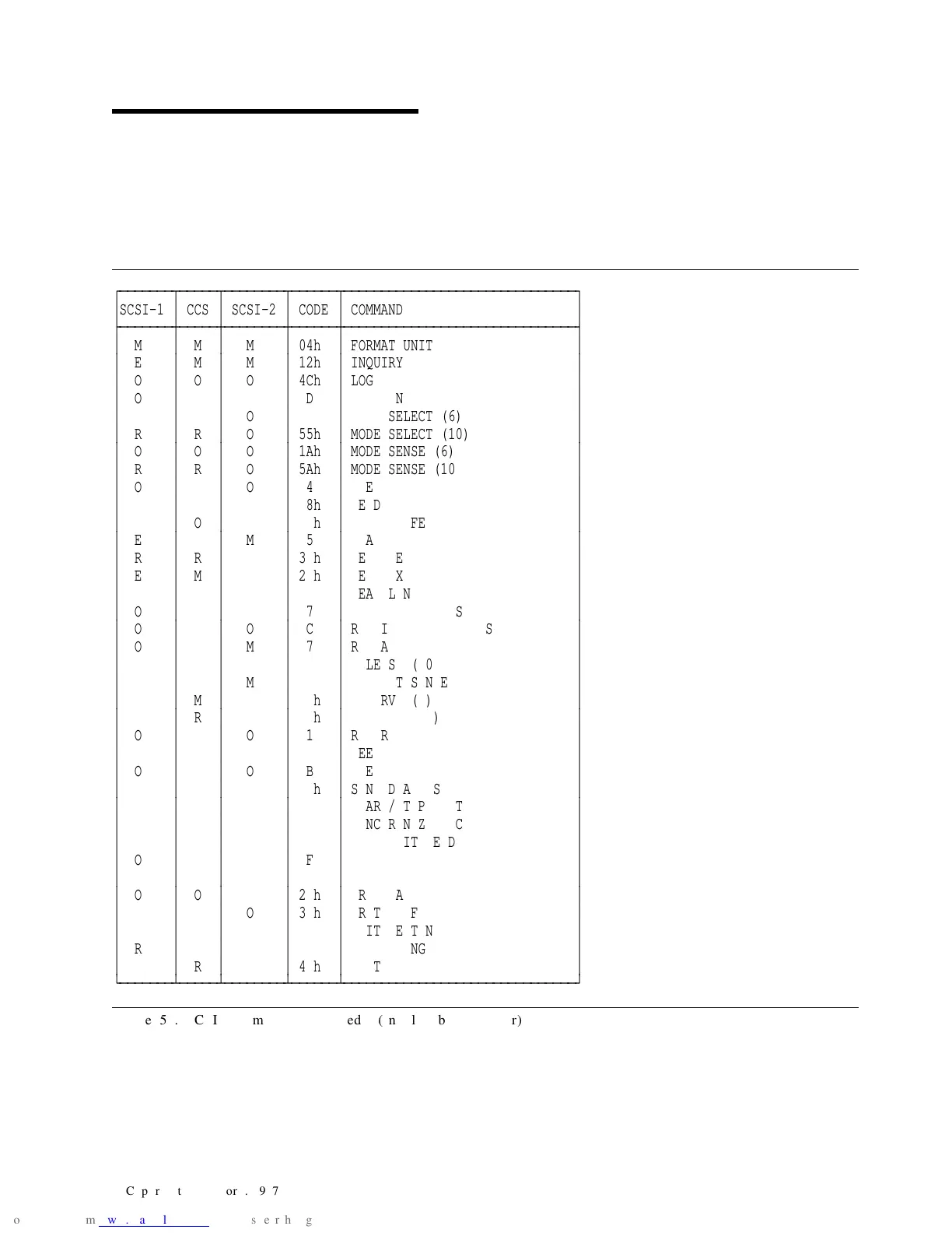 M=mandatory, E=extended, R=reserved and V=vendor unique. The column “SCSI-1” refers to ANSI