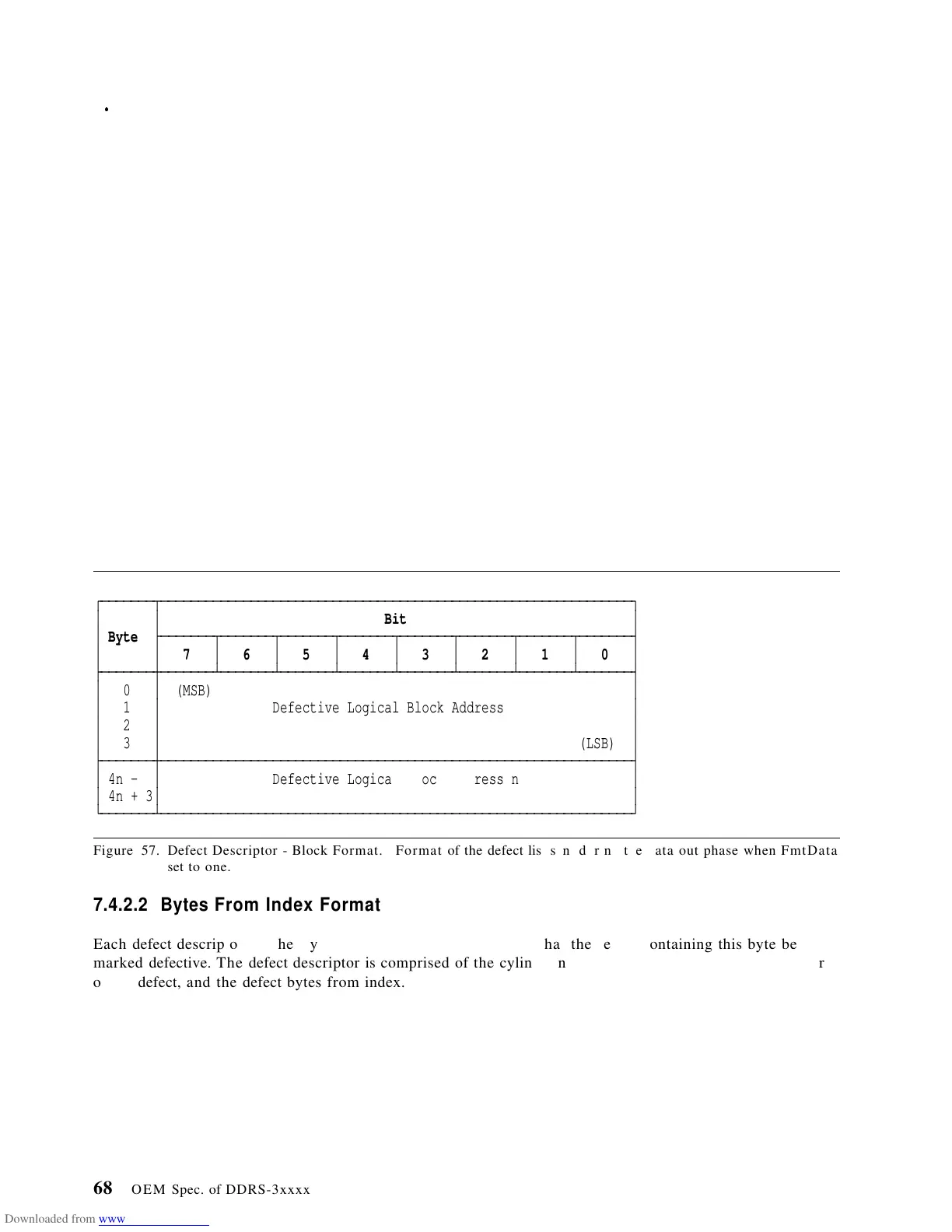 Each defect descriptor for the Bytes From Index format specifies that the sector containing this byte be