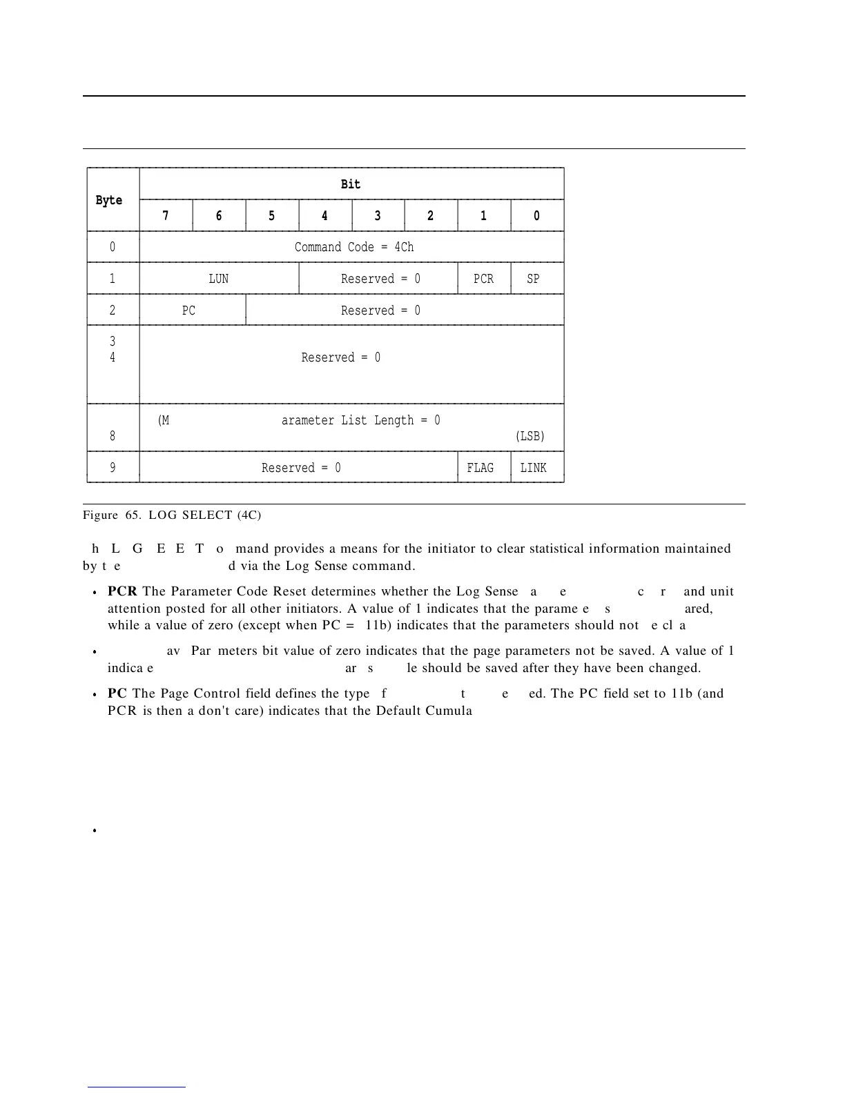 PCR The Parameter Code Reset determines whether the Log Sense parameters will be cleared and unit