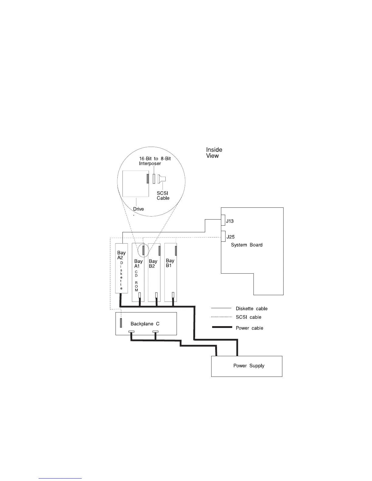 Attention Route the cables (SCSI-2 and power) at the rear of the