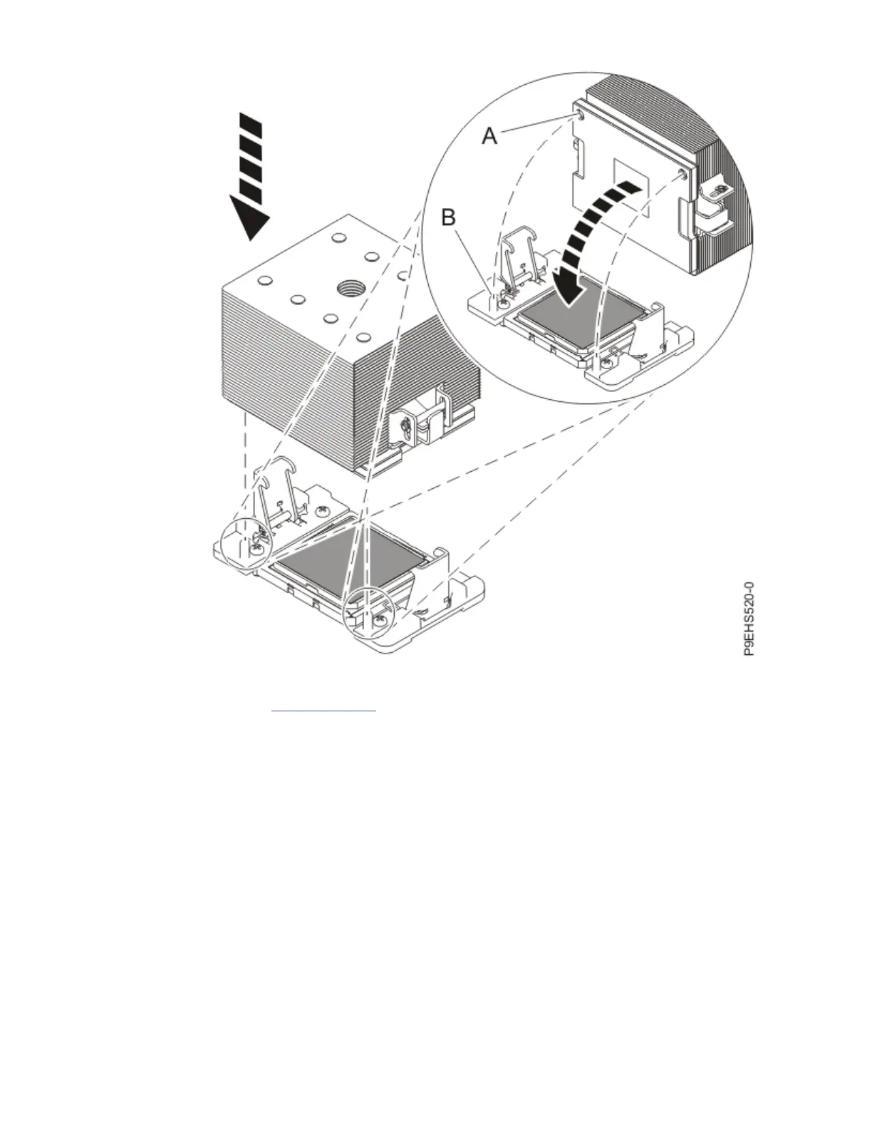 a) Ensure that the heat sink load arms are engaged as shown by (A) in the following gure.
