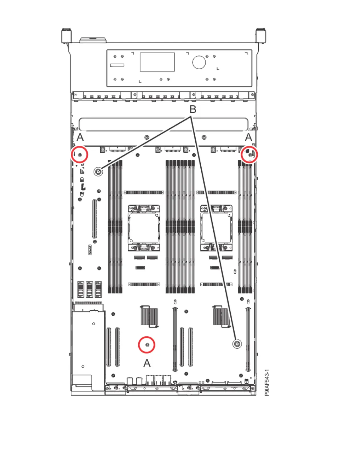 4. Replace the 3 screws (A) to secure the system backplane to the system.