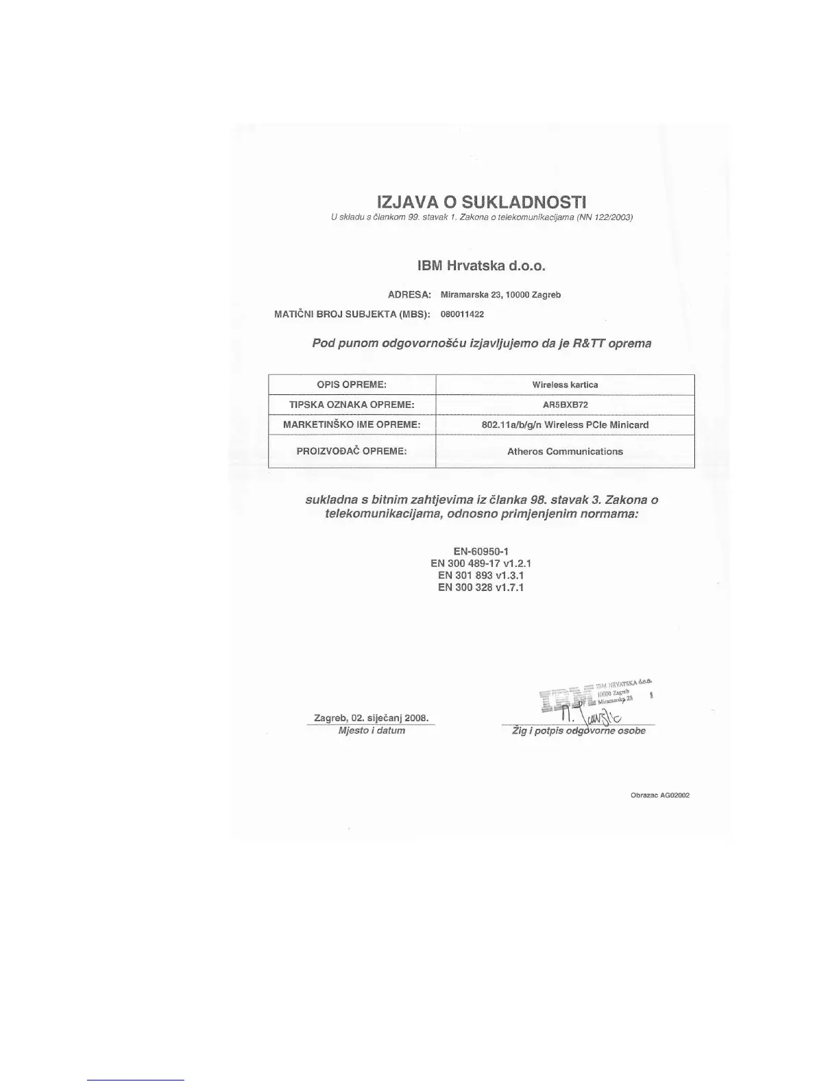 Croatia - wireless certification documents