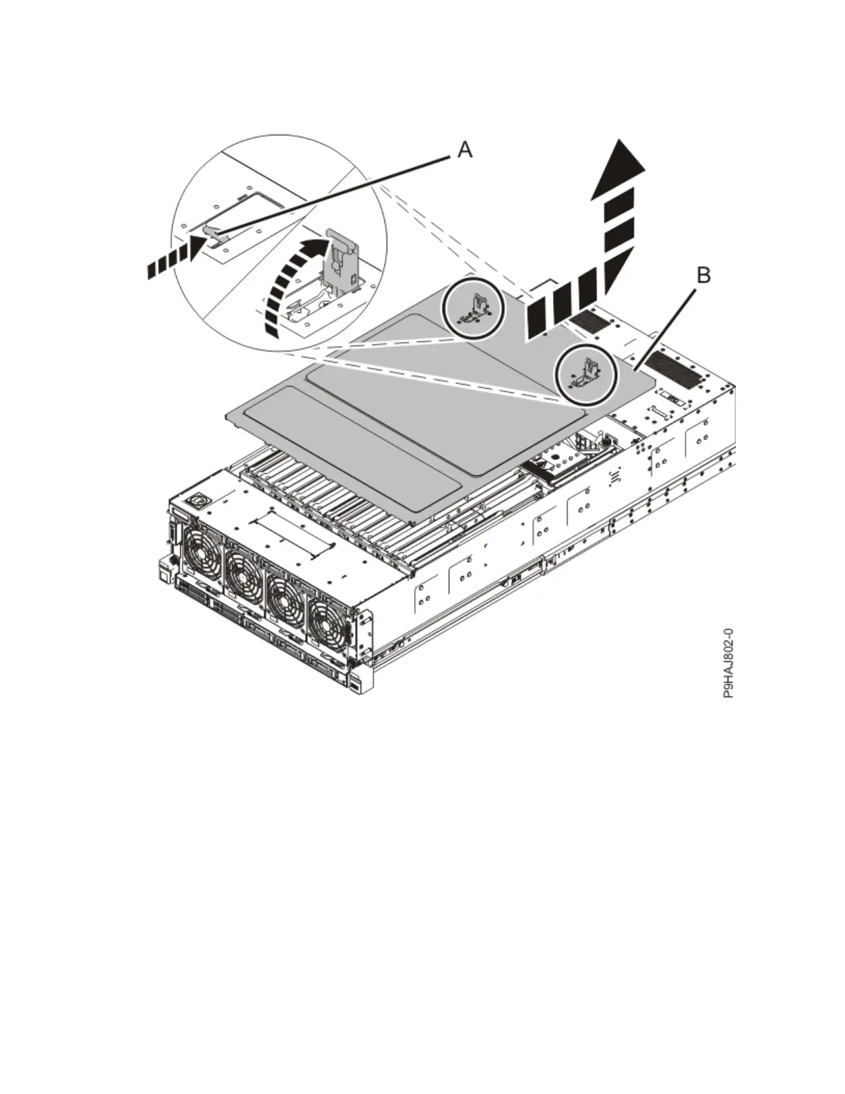 b. Slide the cover (B) off the system unit as shown in the following gure. When the front of the