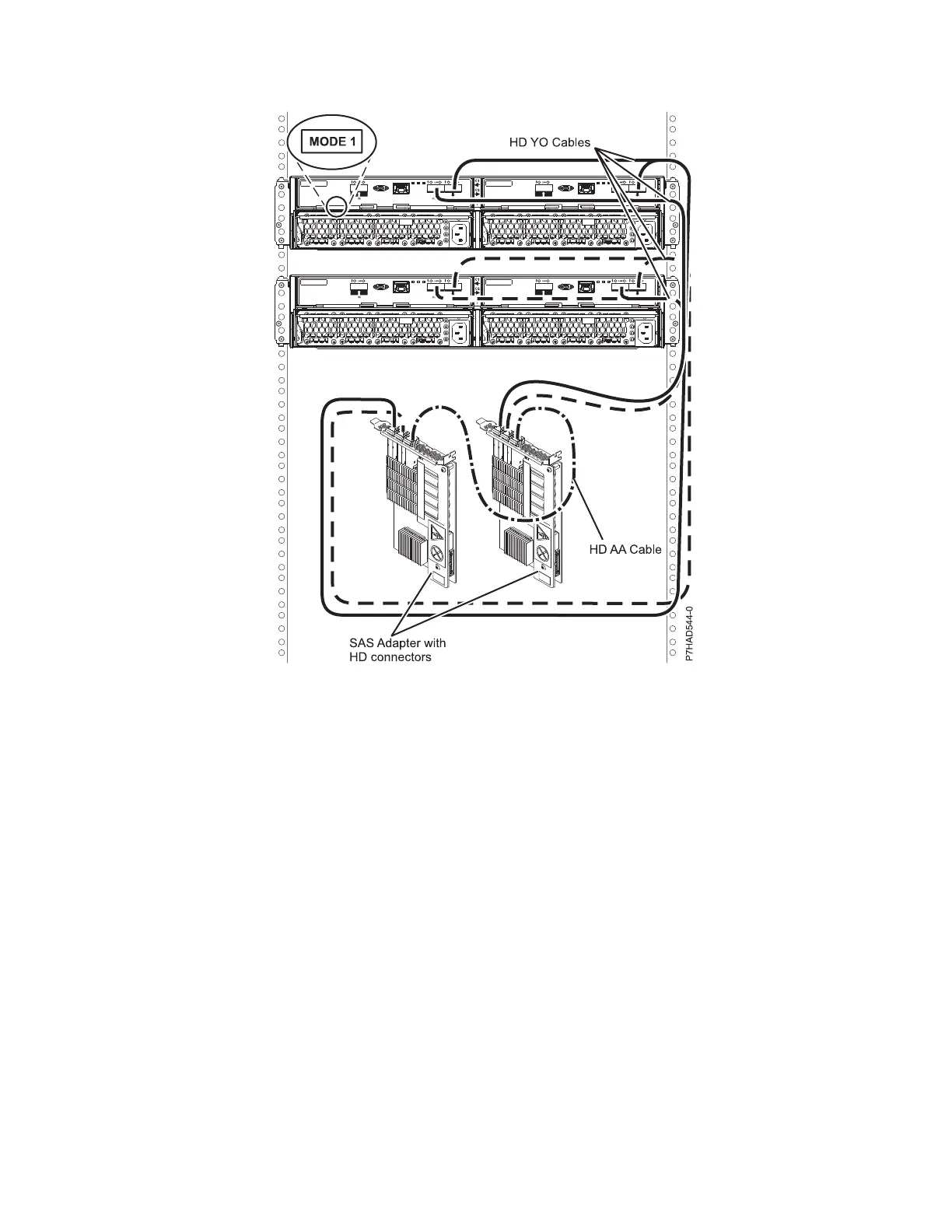 Figure 74. Two RAID SAS adapters with HD connectors to two disk expansion drawer in a multi-initiator HA mode