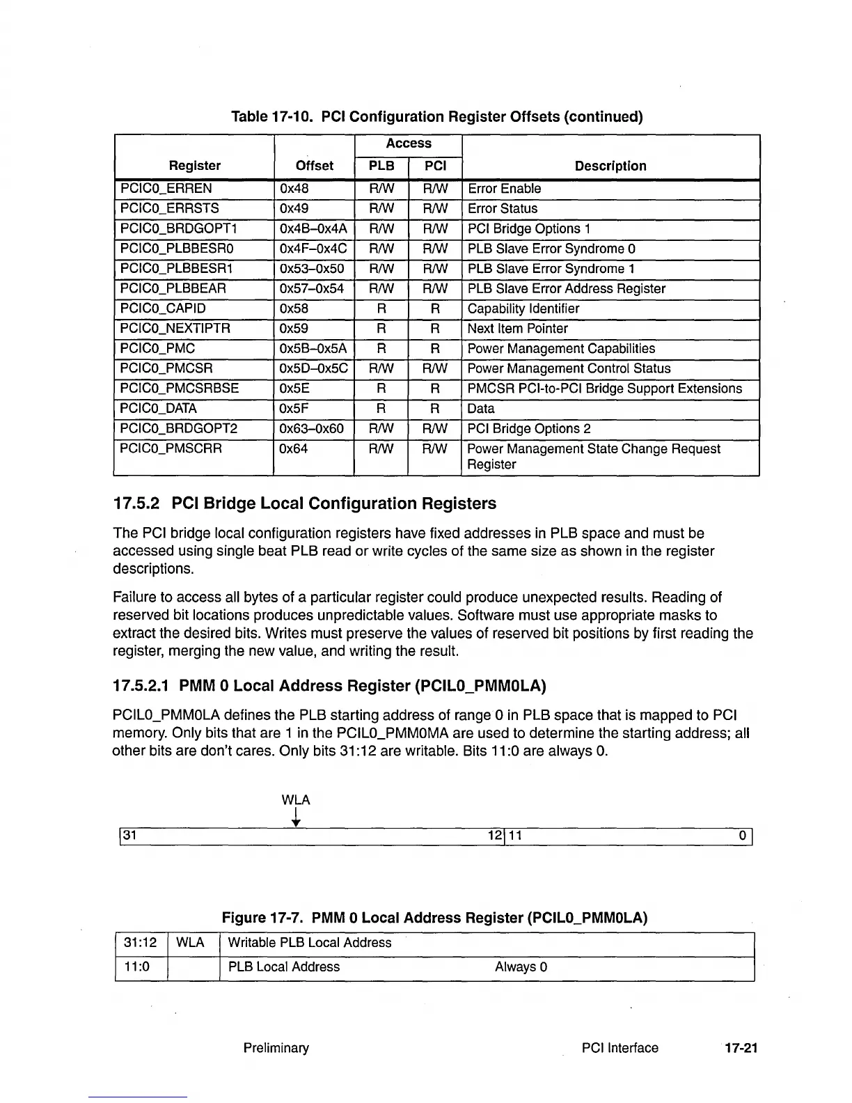 memory. Only bits that are 1 in the PCILO_PMMOMA are used to determine the starting address; all