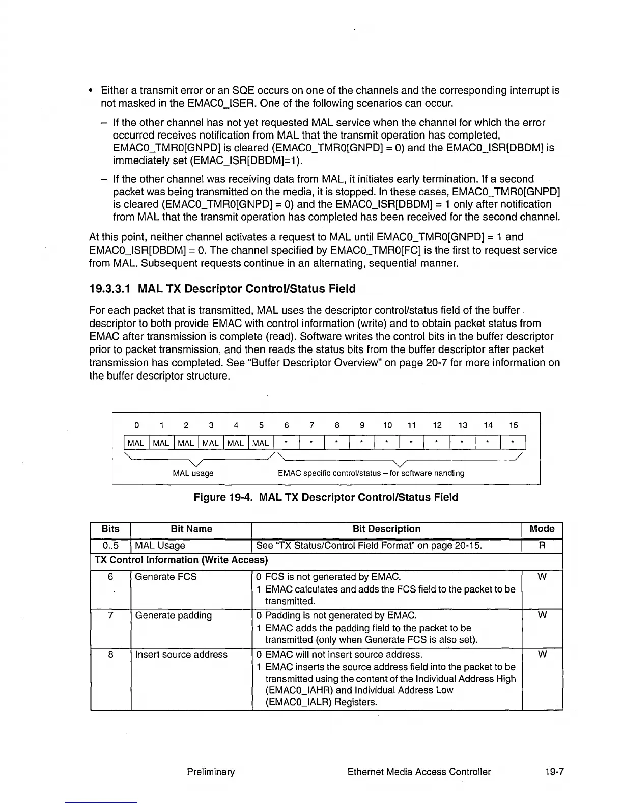 19.3.3.1 MAL TX Descriptor Control/Status Field