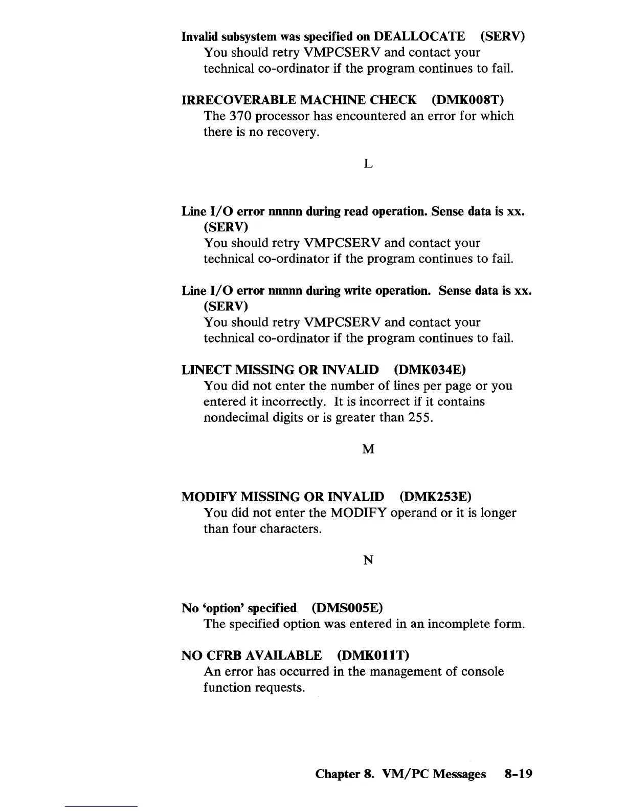 IRRECOVERABLE MACHINE CHECK (DMK008T)