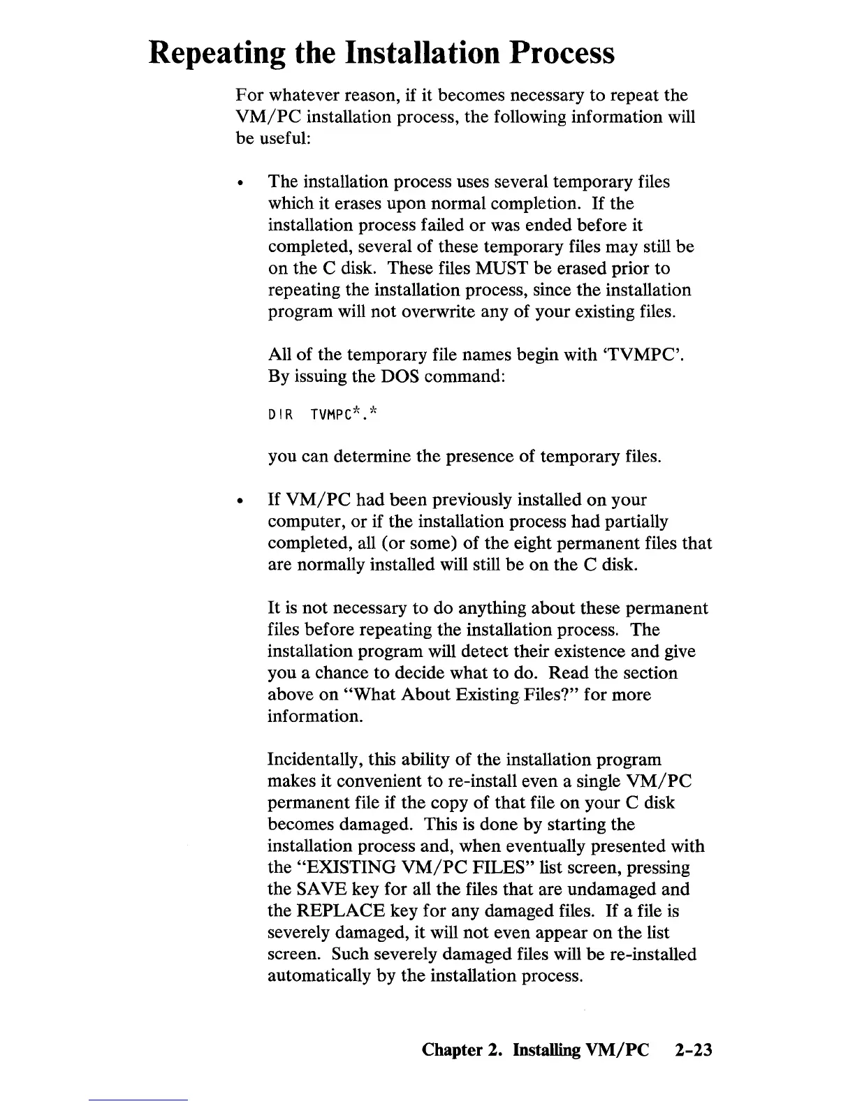 files before repeating the installation process. The