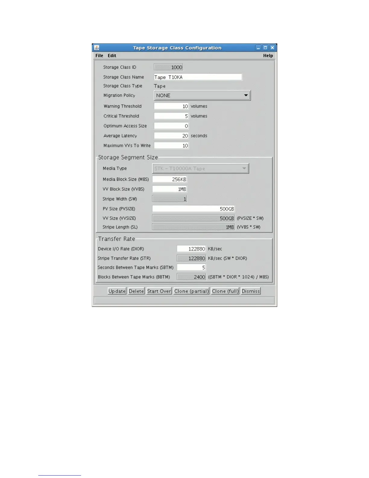 This window is used to manage tape storage class configurations.