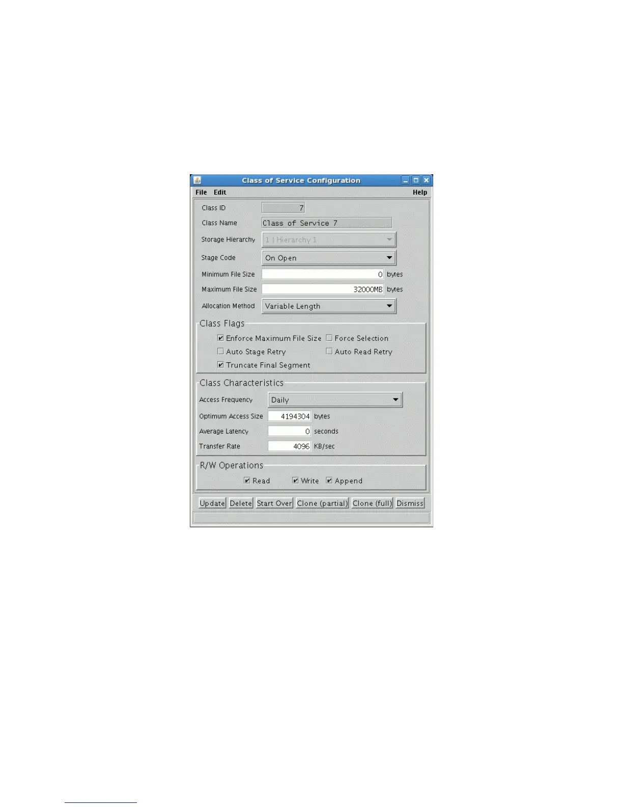 This window allows an administrator to manage a class of service.