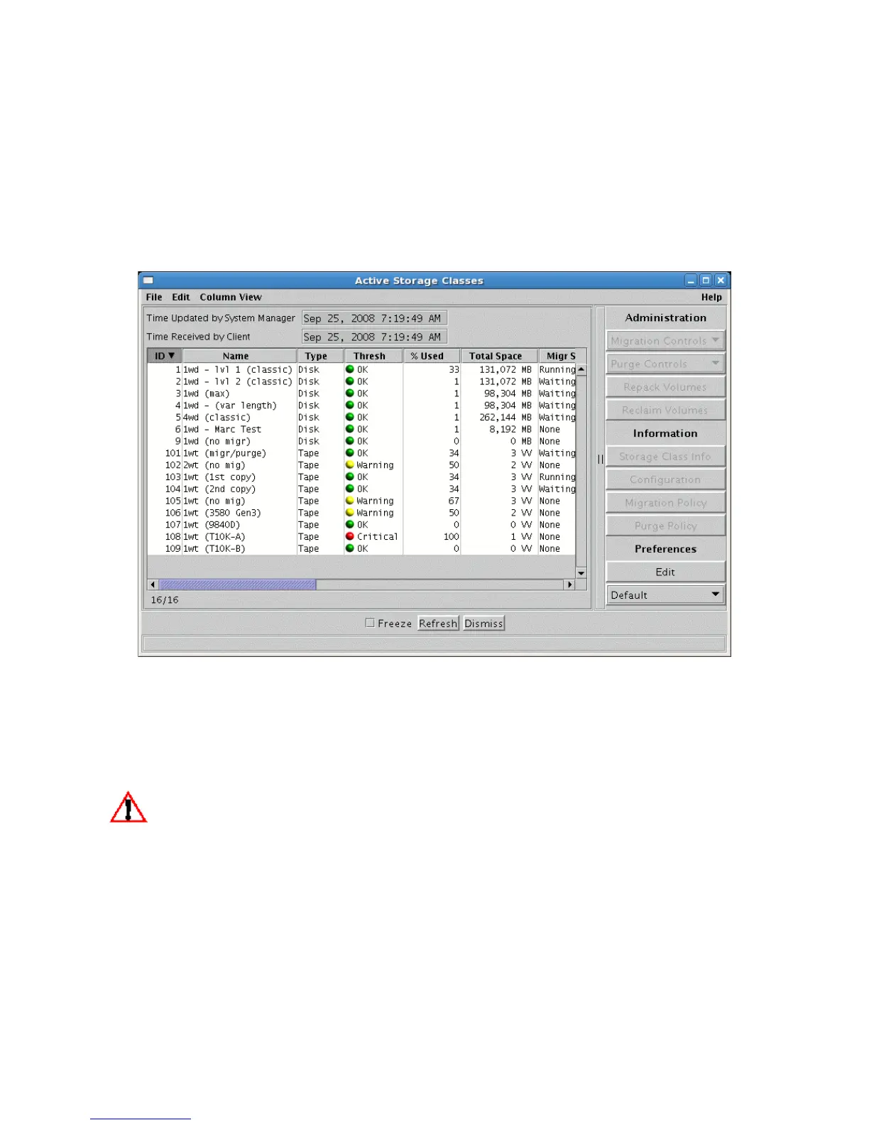 The Active Storage Classes window allows you to view a list of all active storage classes. An active