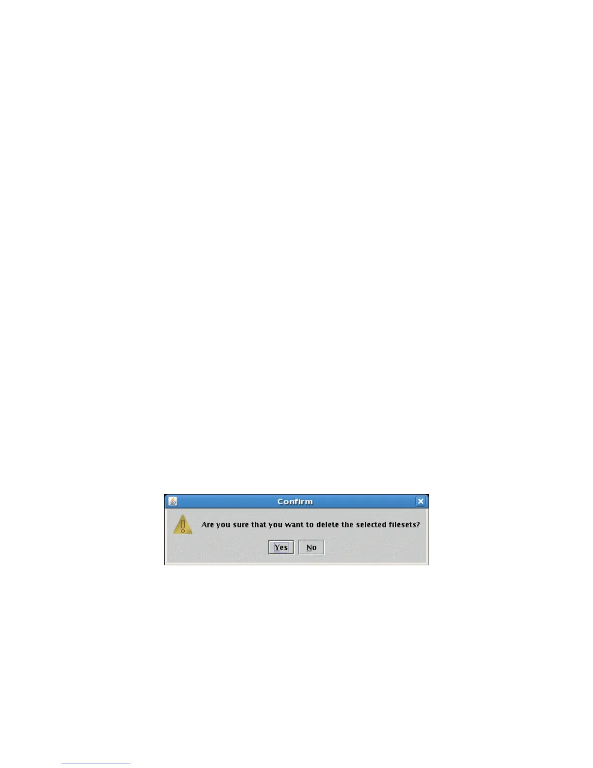 Delete. Requests deletion of the currently displayed fileset. A confirmation will be requested