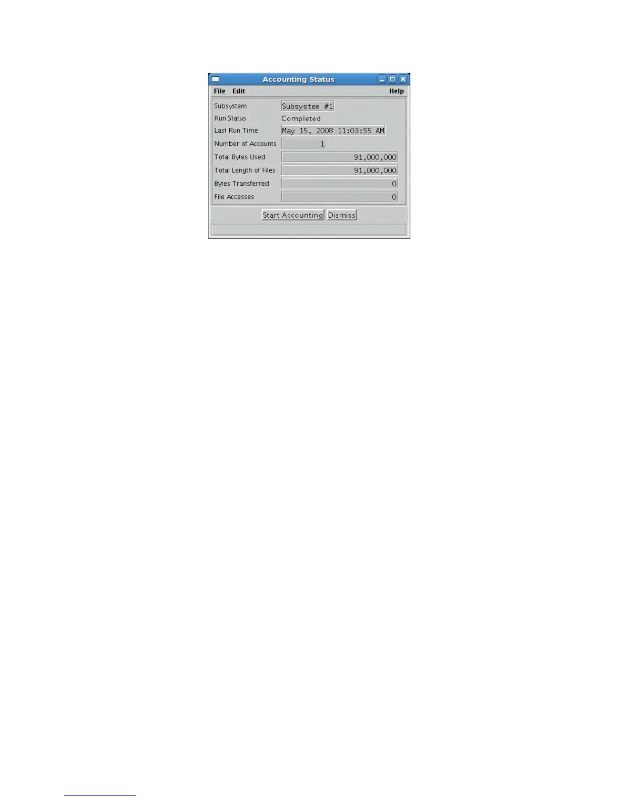 This window allows an administrator to view the accounting status and start accounting.
