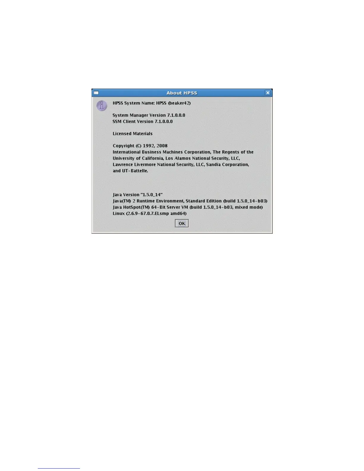 The HPSS System Name and System Manager Version are not displayed when the About HPSS window
