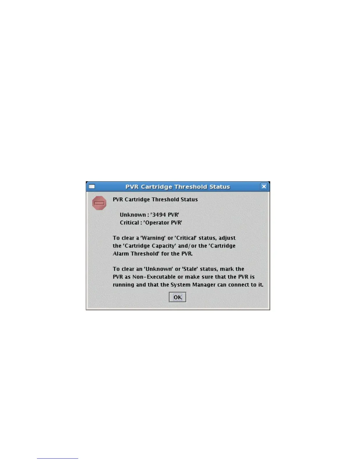 For PVR Cartridge Thresholds the button will display a message dialog with information about the PVRs