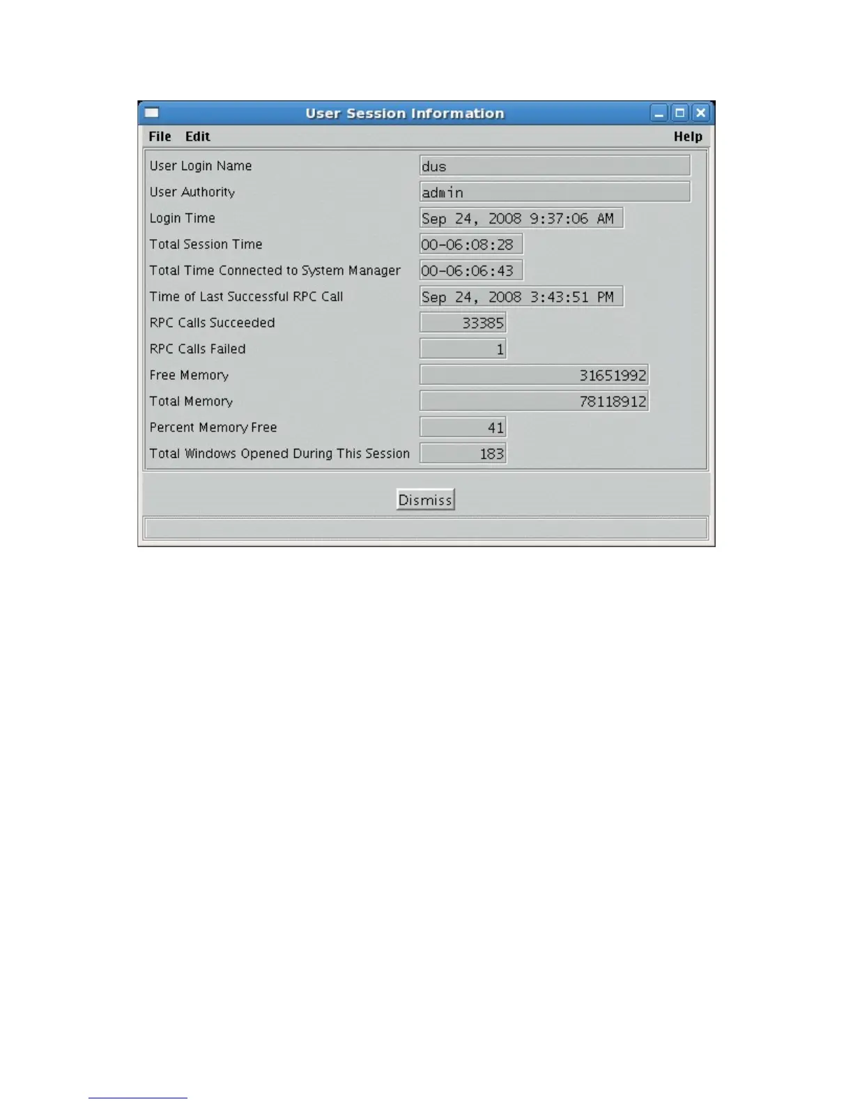 Total Time Connected to System Manager. The amount of time that the user has been connected to the