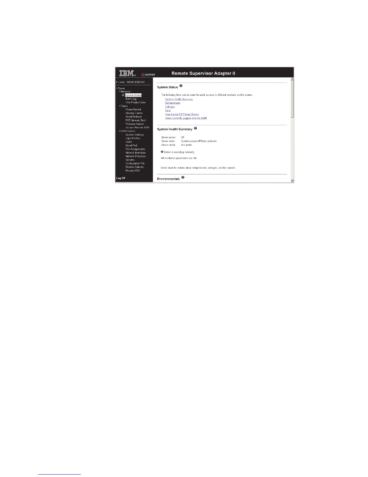 navigation pane of the Remote Supervisor Adapter II Web interface, see