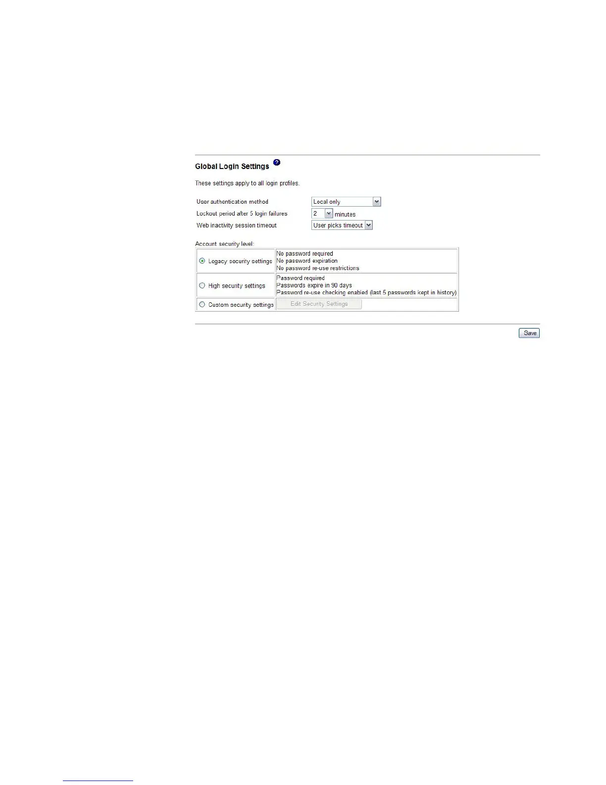 3. Scroll down to the Global Login Settings area. A page similar to the one in the