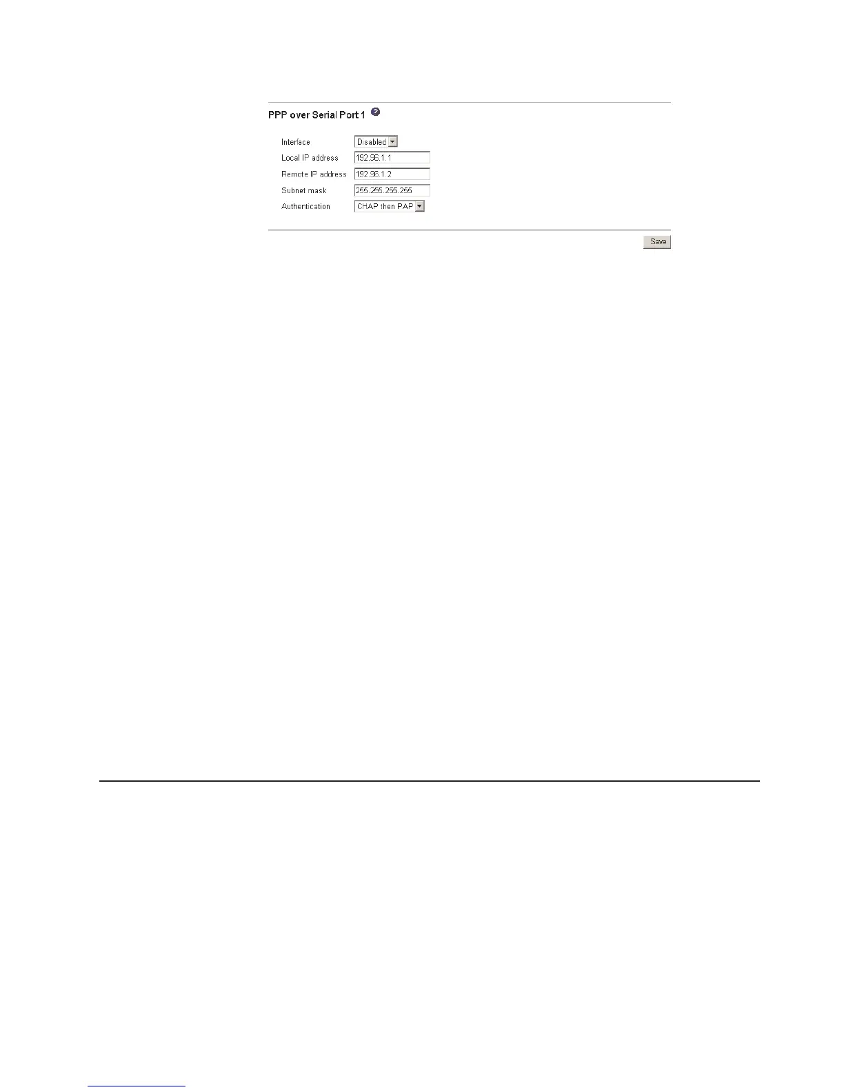 4. In the Local IP address field, type the local IP address for the PPP interface on