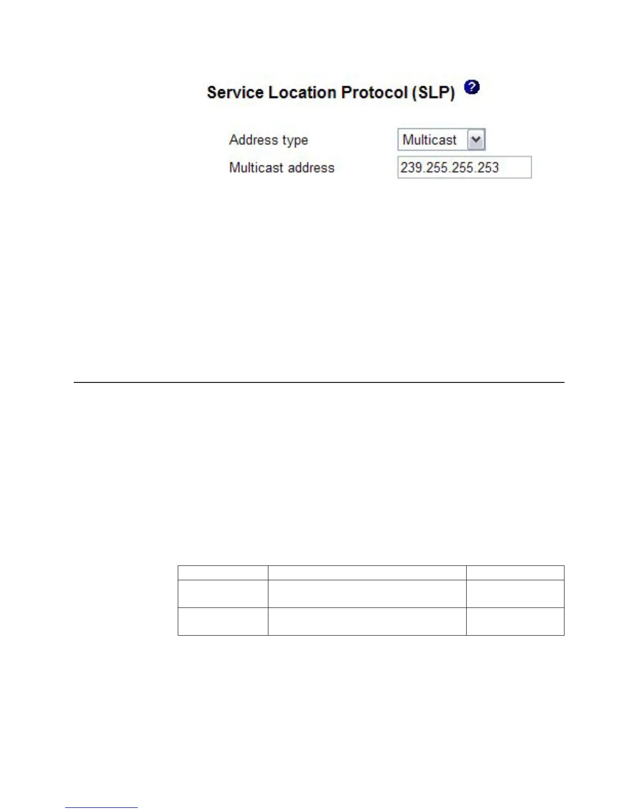 of 255.255.255.255. If Multicast is selected, the SLP server listens on