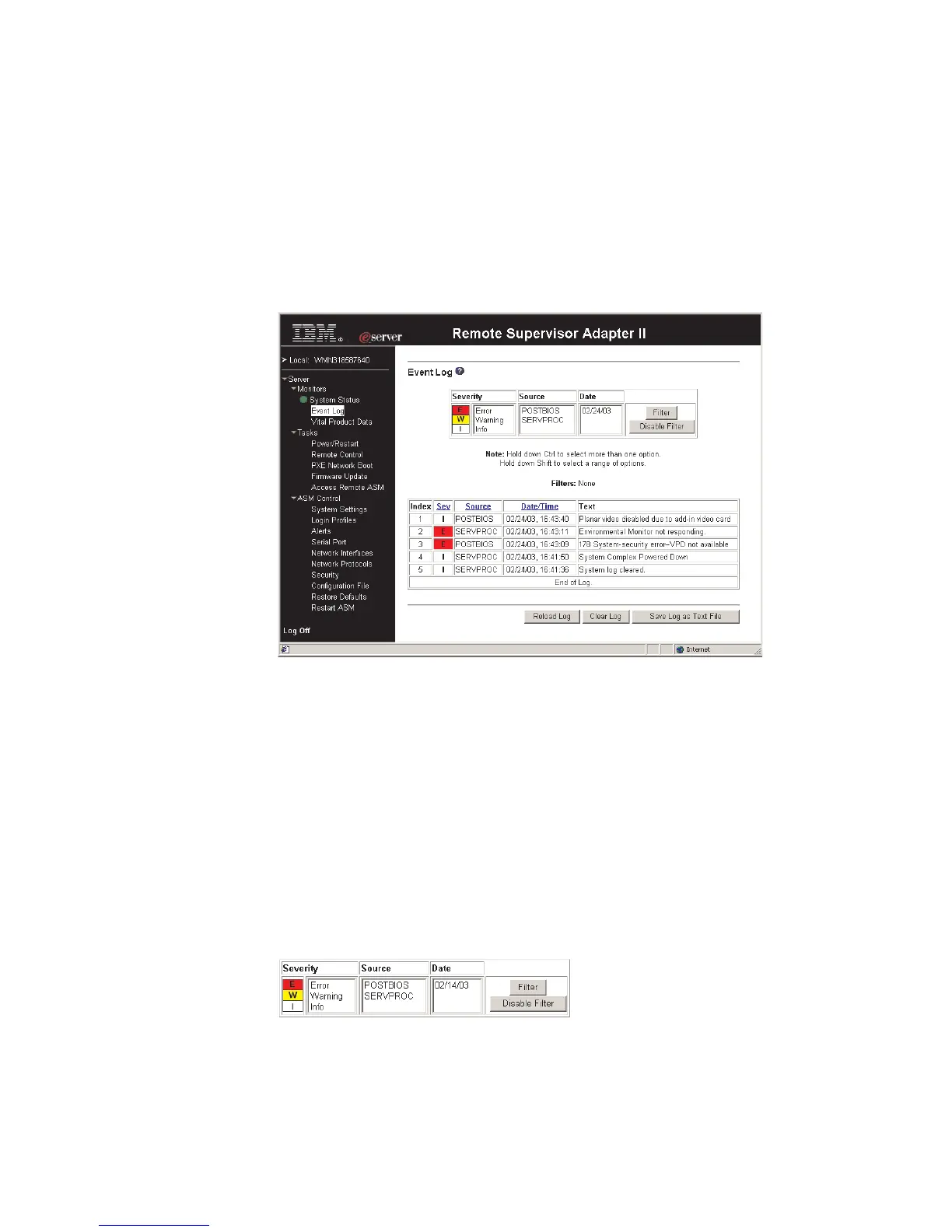 Remote Supervisor Adapter II Web interface distinguishes warning events