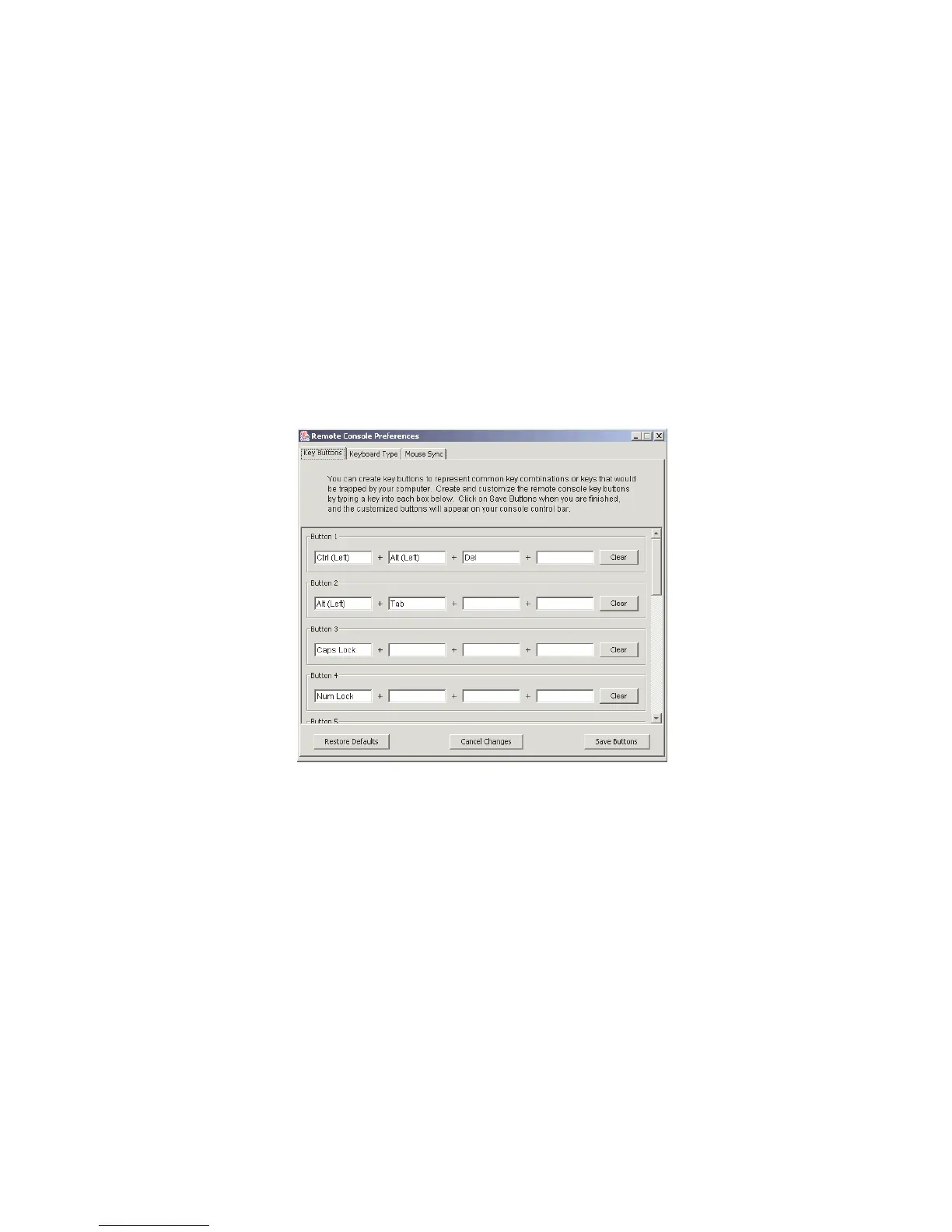 2. Click the Key Button tab. A window similar to the one in the following