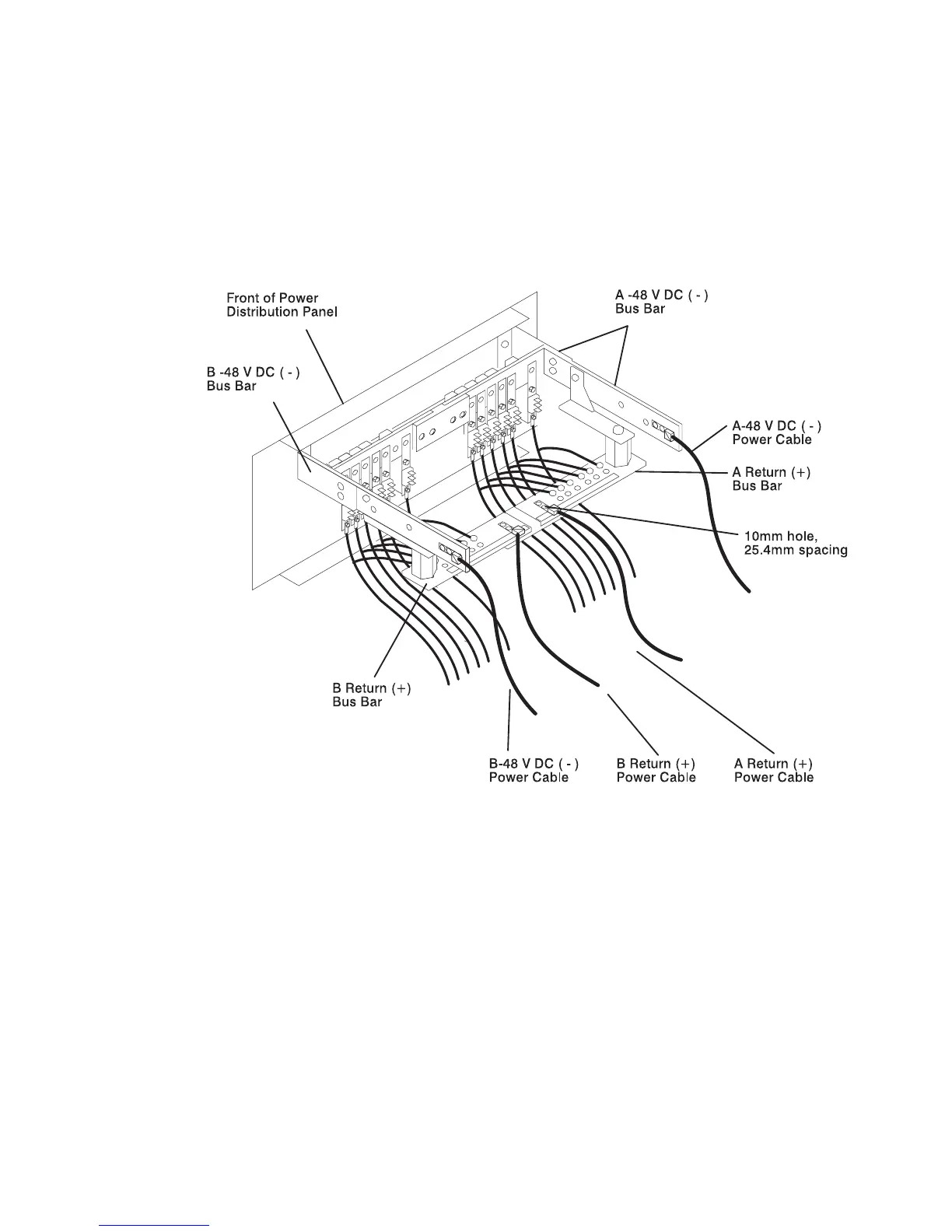 cables to the -48 V DC bus bars and the return power cables to the return bus