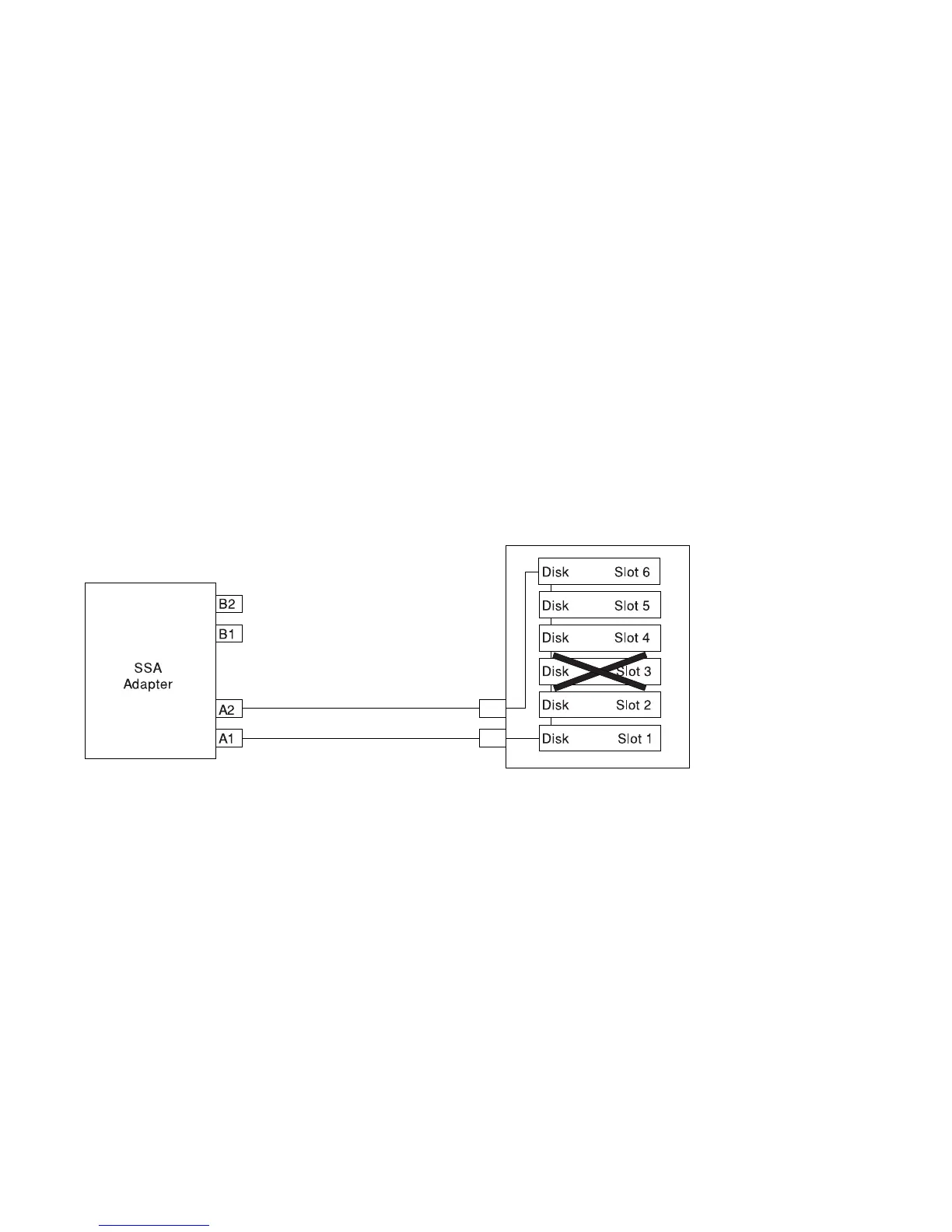 connector A1 of the SSA adapter. The disk drive modules in slots 4, 5, and 6 can