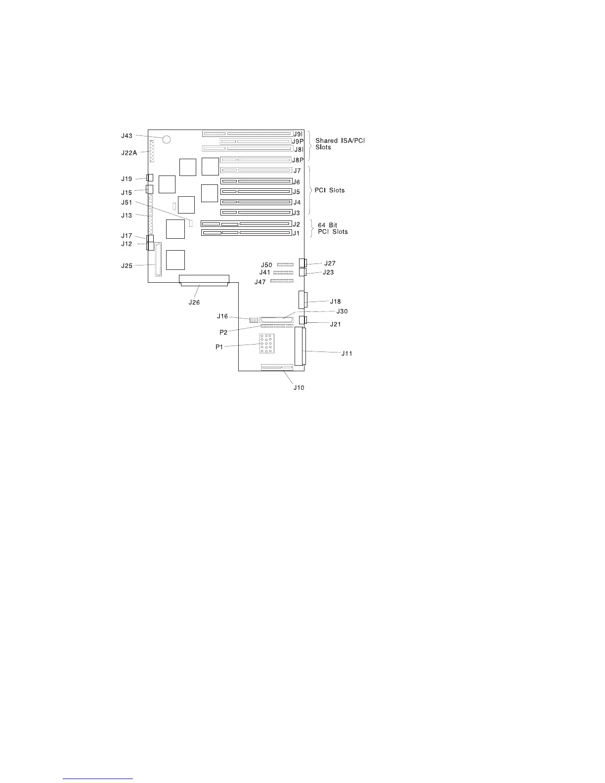 J30 Internal SCSI connector (port 2) J41 Serial connector (serial port 1 and 2)
