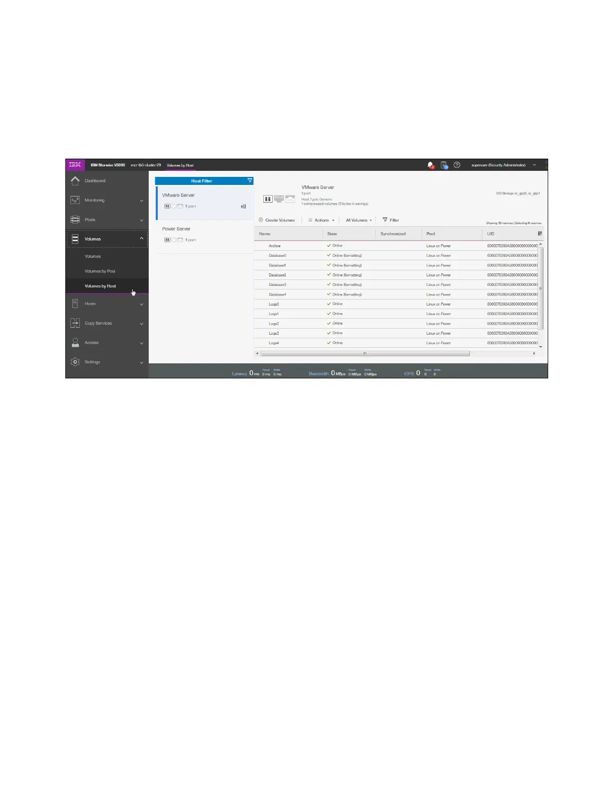 the volumes that are mapped to a certain host. You can perform the same actions with