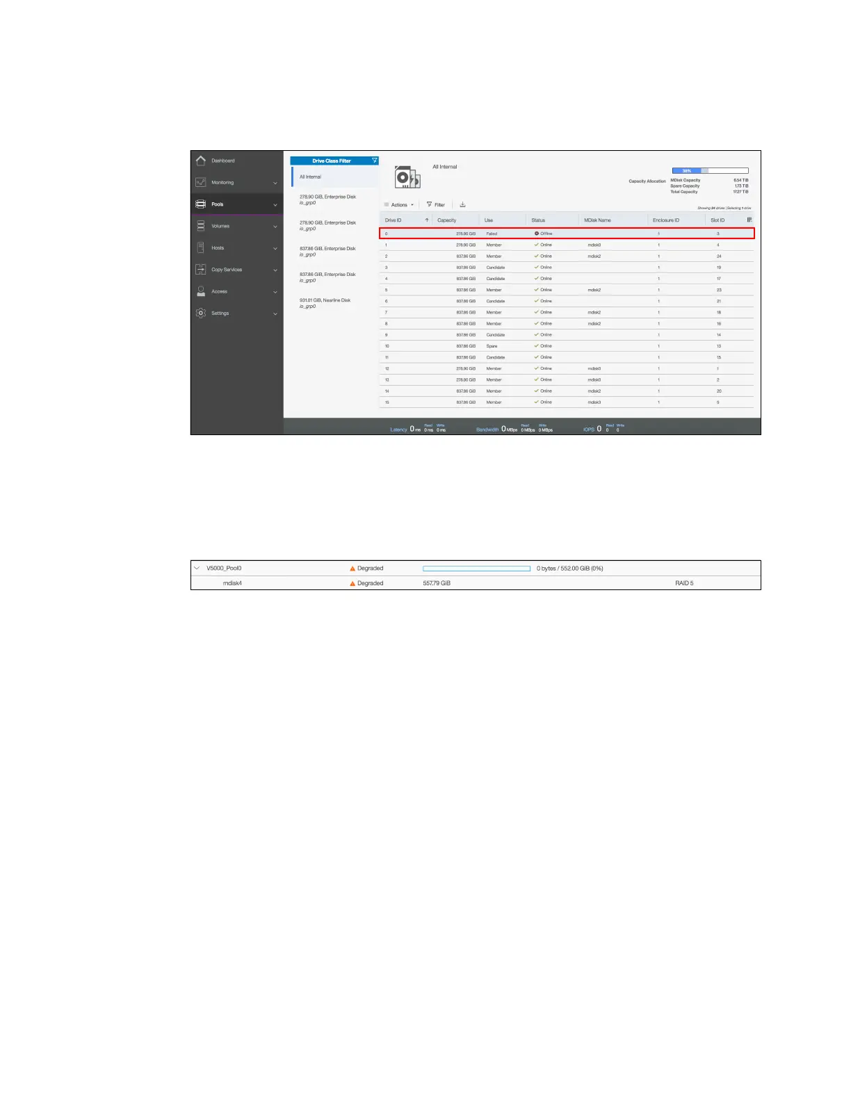If the drive fails (as shown in Figure 4-7), the MDisk (from which the failed drive is a member)