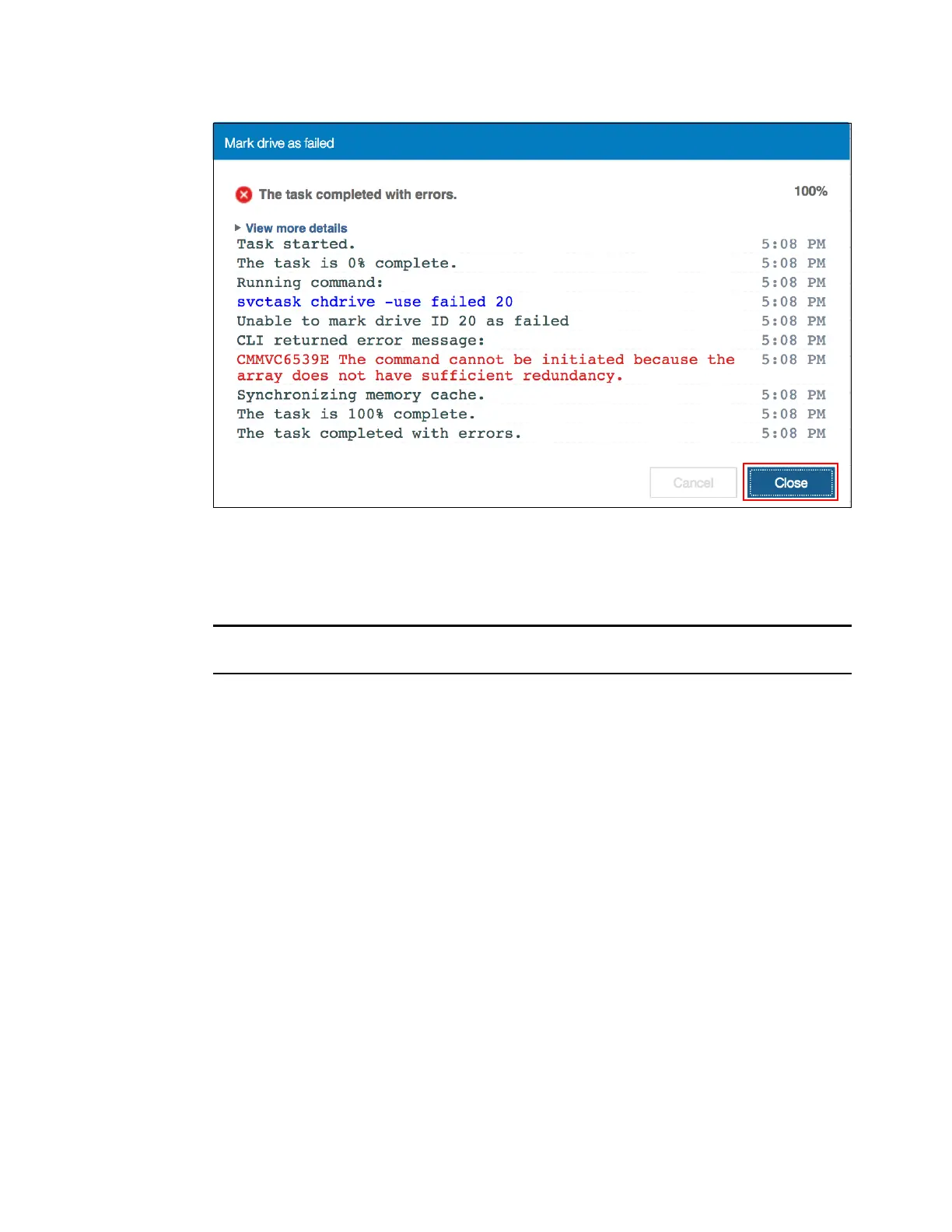 Figure 4-9 Internal drive offline not allowed because of insufficient redundancy