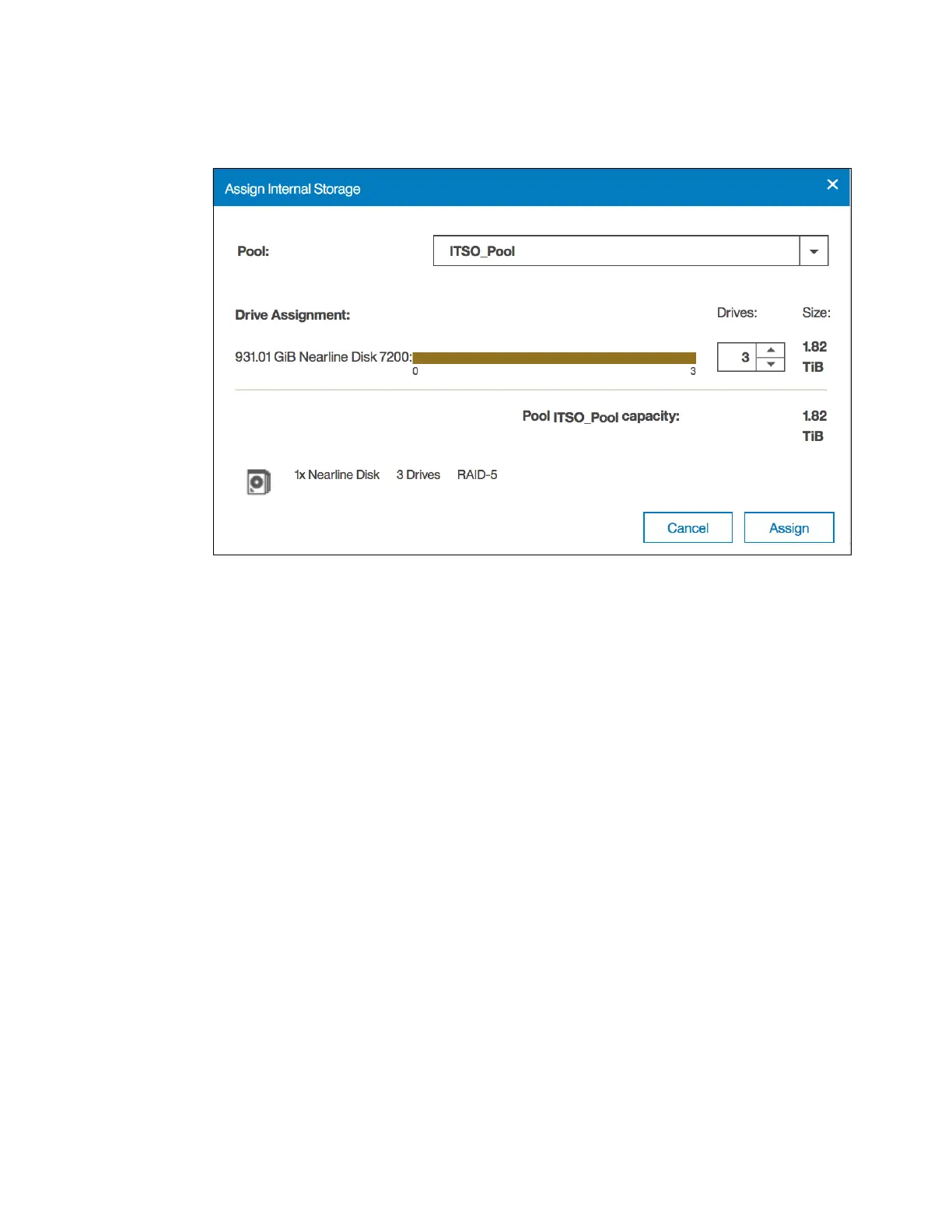 Selecting Internal suggests a configuration for internal drives based on RAID configuration
