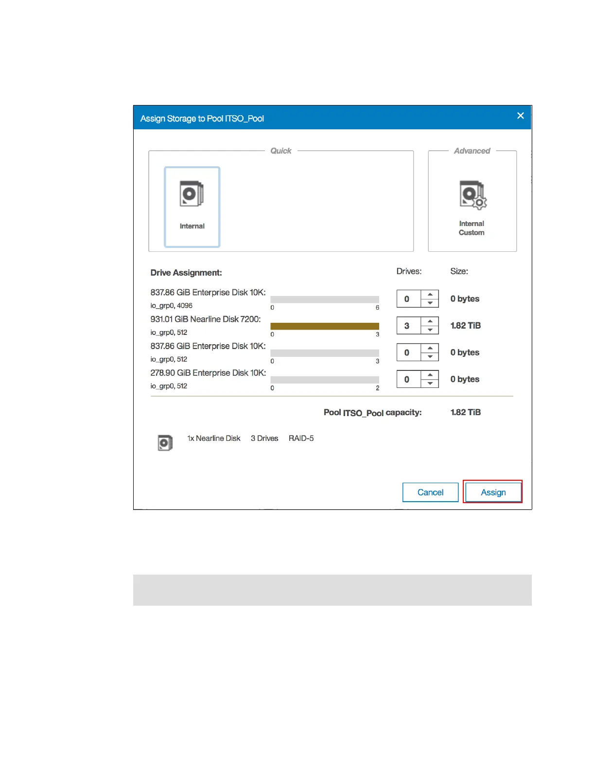 Selecting Internal Custom allows the user to customize the configuration for internal drives.