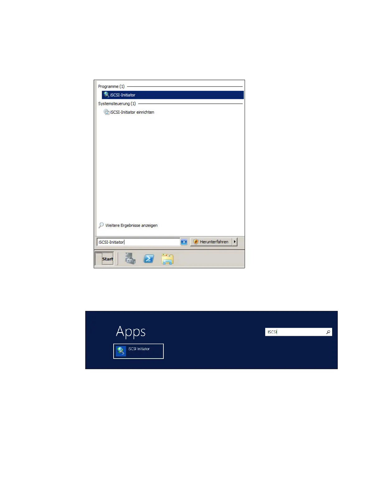 1. Enter iscsi in the search field of the Windows 2008 R2 Start window (Figure 5-9) and