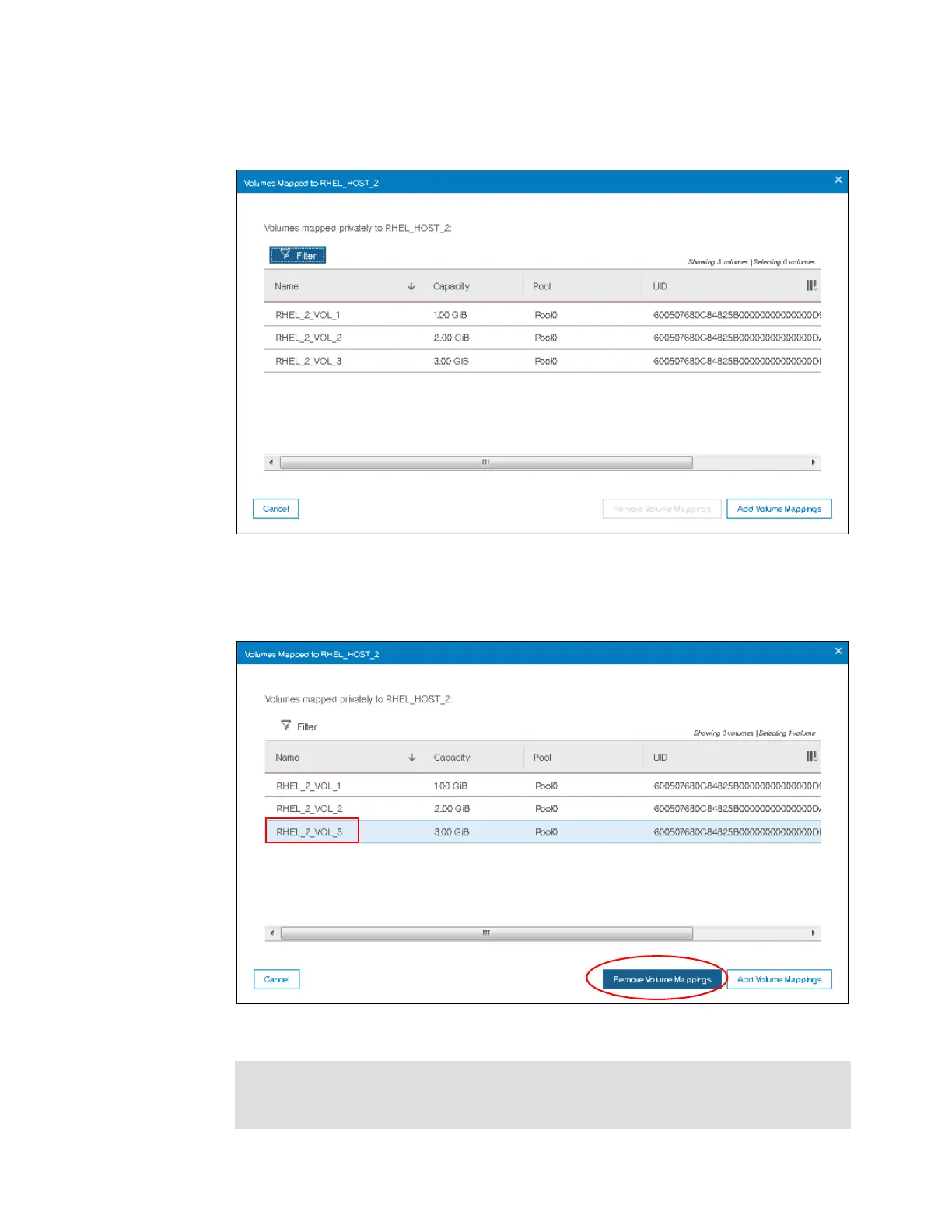 4. Select the volume that you want to unmap and then click Remove Volume Mappings as