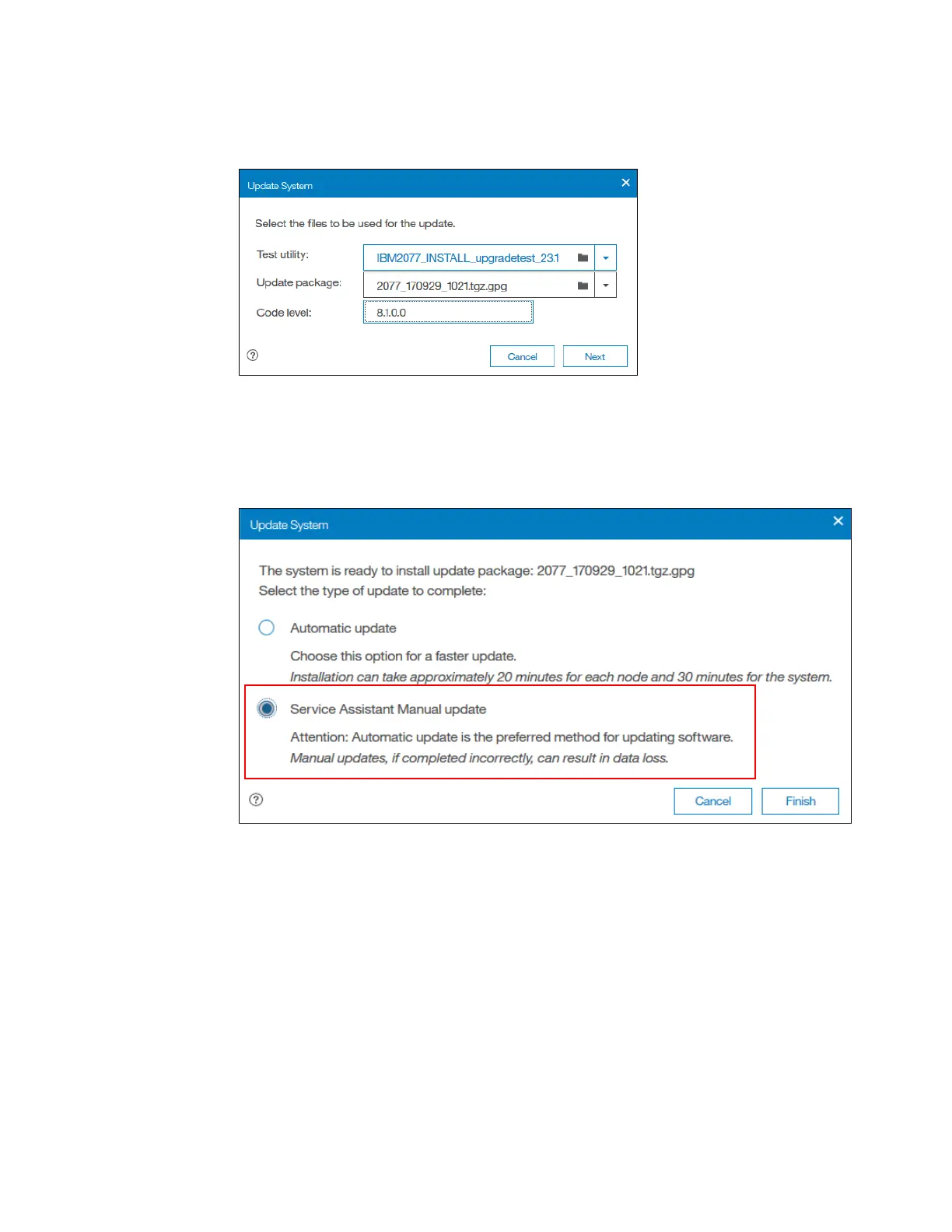 3. Select Service Assistant Manual update and click Finish, as shown in Figure 12-45.