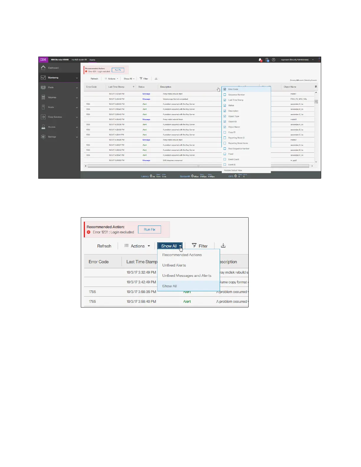 Only events with Recommended Actions (Status Alert) are displayed. For each problem
