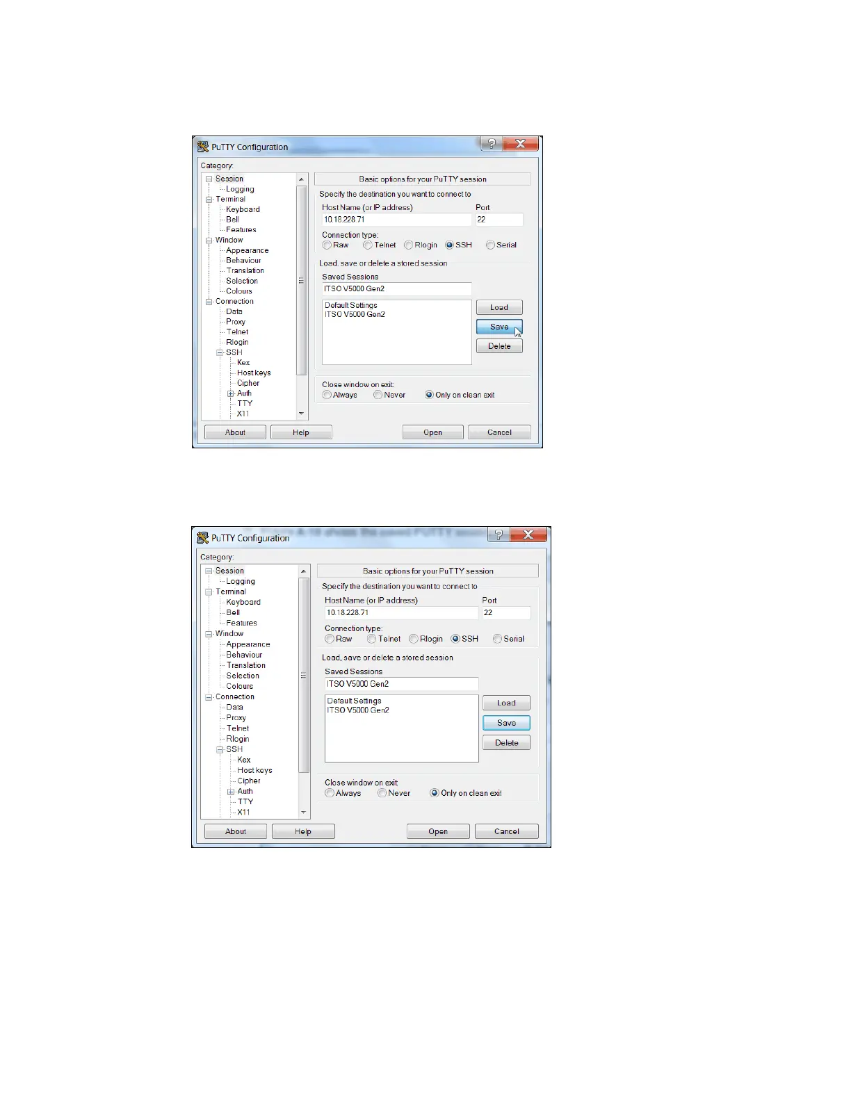 7. Figure A-18 shows the saved PUTTY session. Select the new session and click Open.