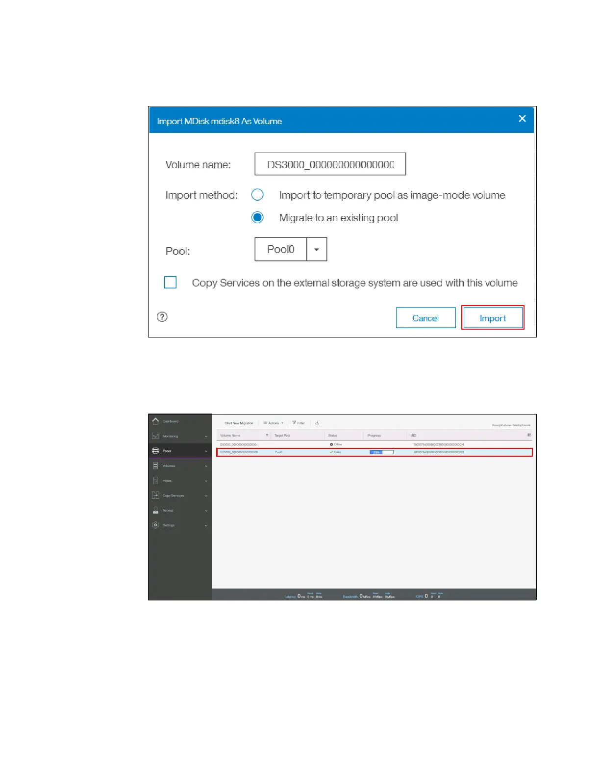 Import, as shown in Figure 4-68. Only pools with sufficient free extent capacity are listed.