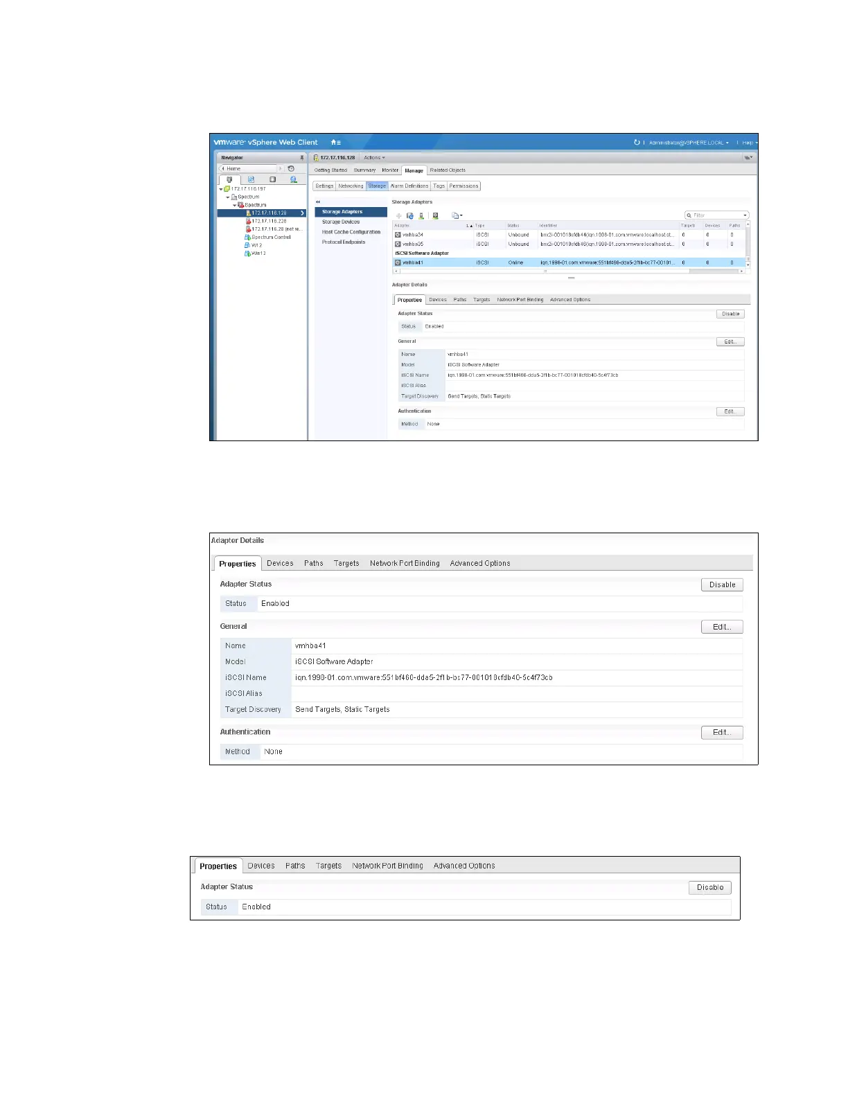 15.The iSCSI Software Adapter Properties window opens. Figure 5-31 shows that the initiator