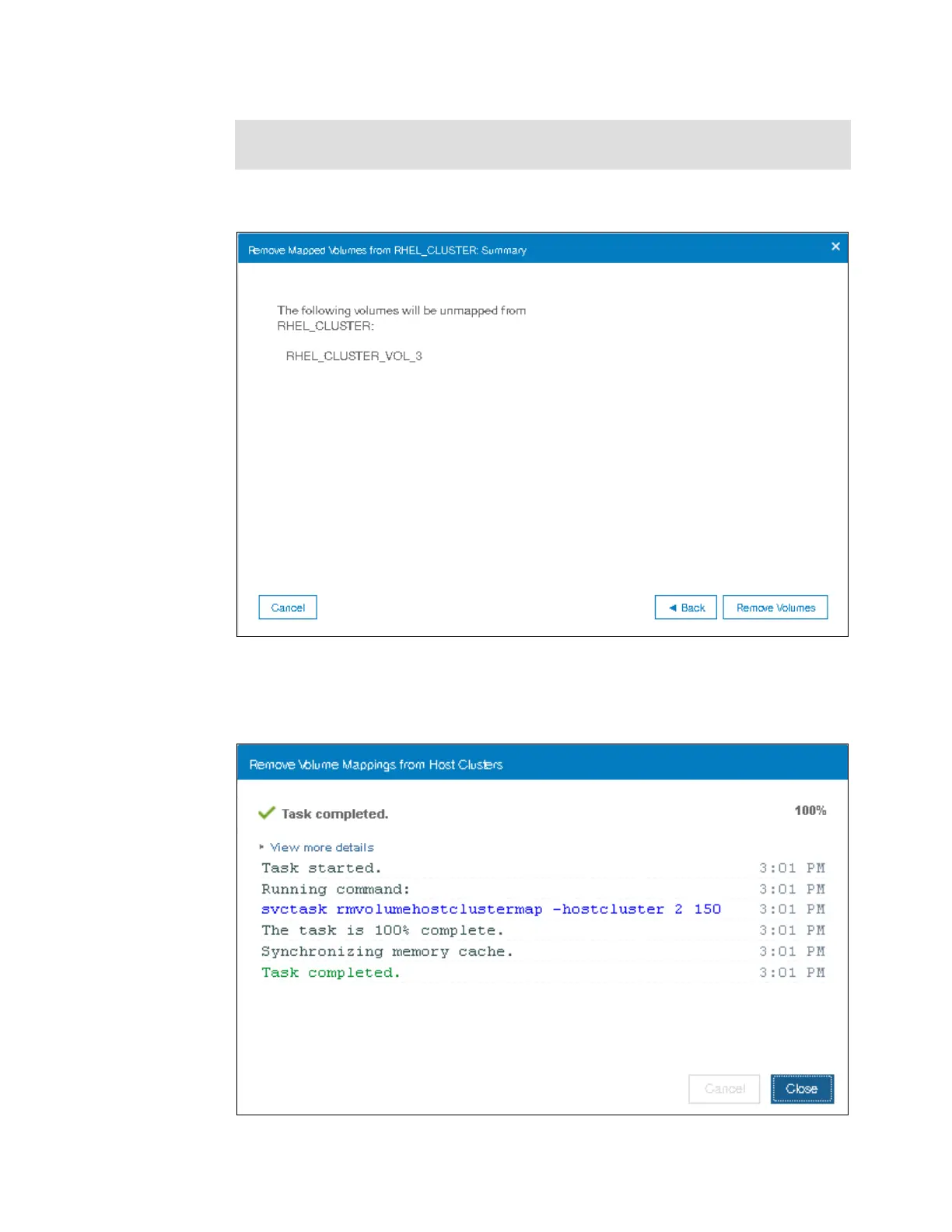 Figure 5-100 Volume unmapping from Host Cluster completed